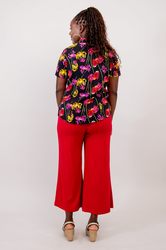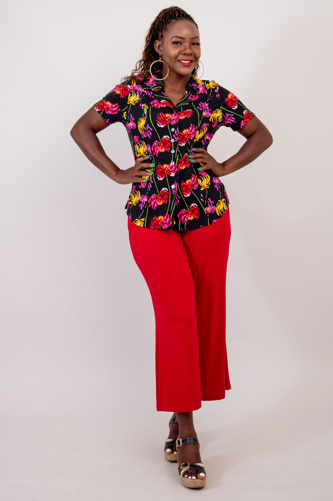 Soft, breathable Linen fabric in a tailored shirt style. A soft line on the collar opens the neckline, and buttons down the front allow for easy dressing and versatile styling. The Samantha looks great paired with capri pants or layered under a cardigan on cooler days. You can even wear it unbuttoned, for a cool shirt-jacket look.