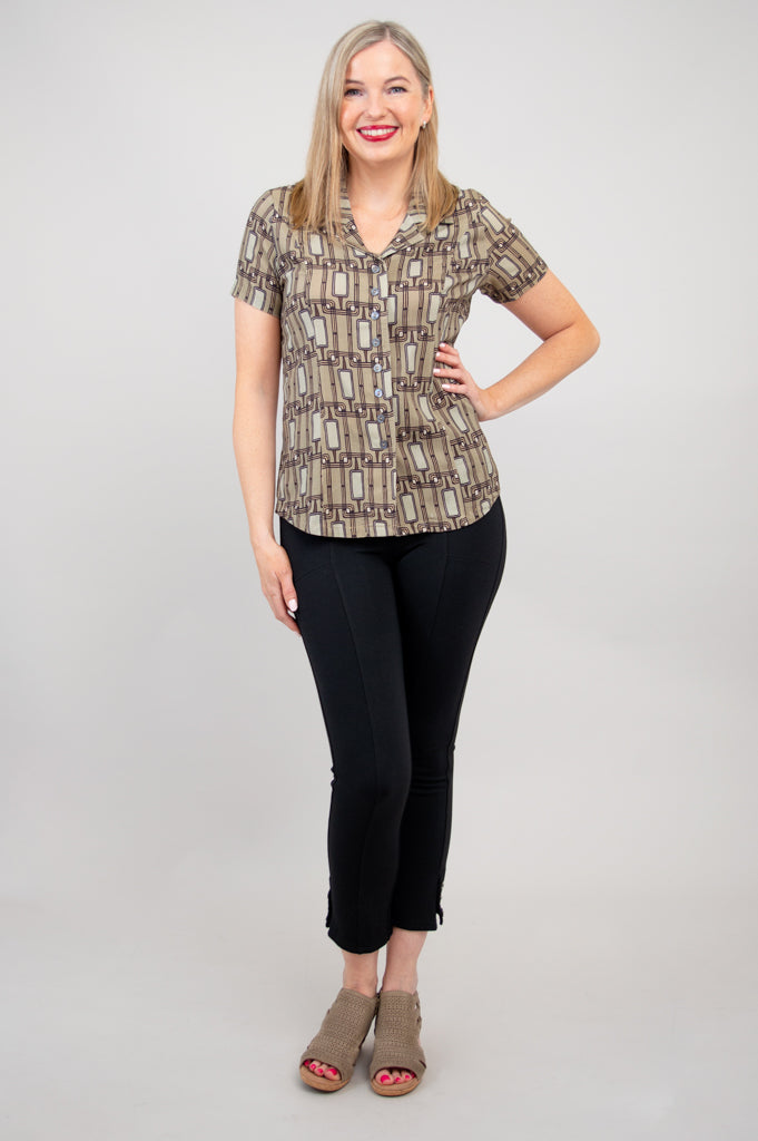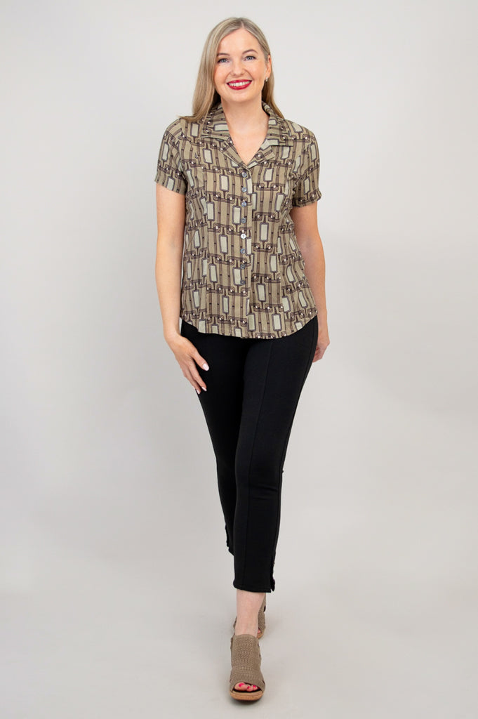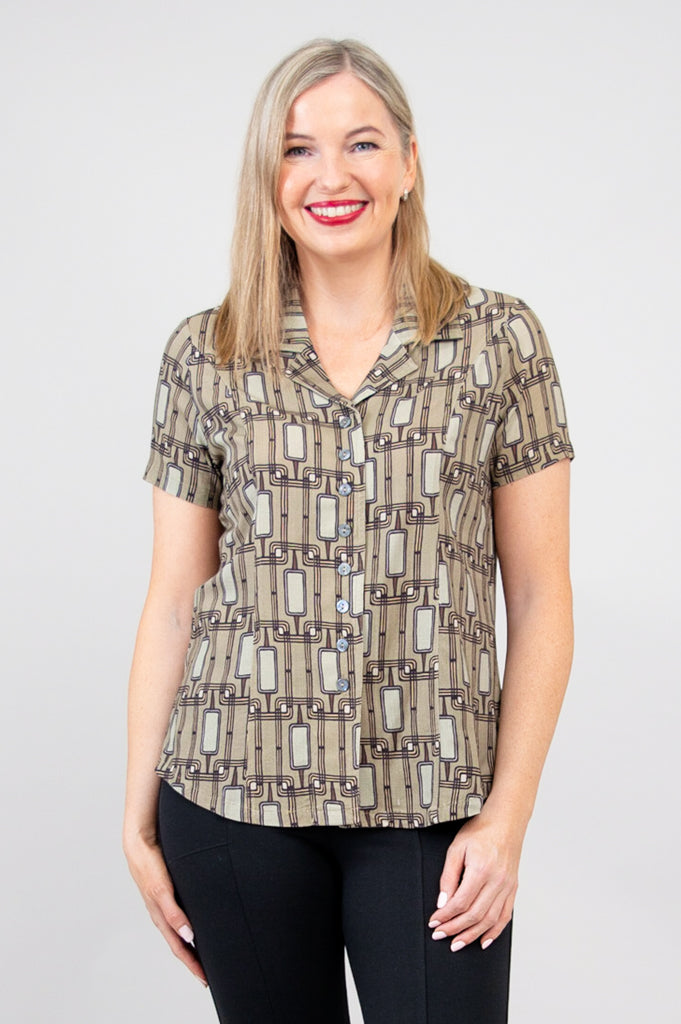Samantha S/S Top, Voyage, Linen Bamboo - Final Sale