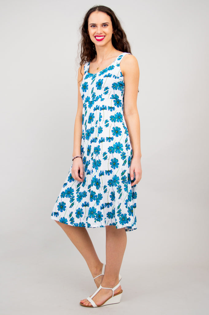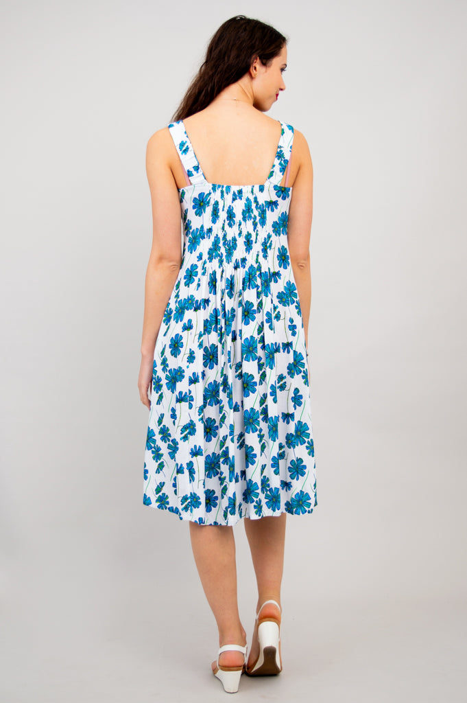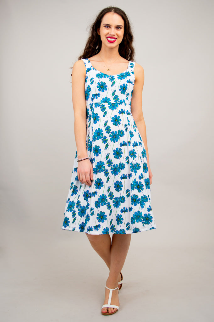 The Shauna is a true Blue Sky favourite. It features an empire waist, A-line skirt and pockets. The back of the bodice is shirred for a perfect fit and enhances all figures. The straps are ample for concealing your bra, so wear it alone or pair it with a shrug for more coverage.