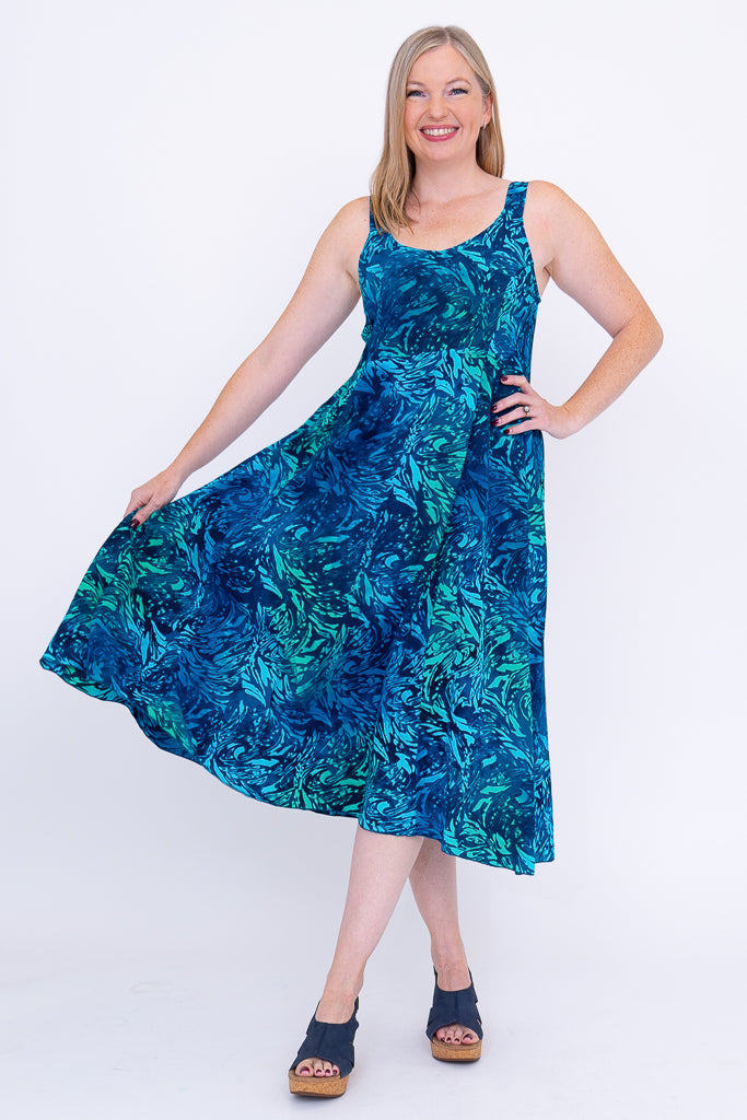 The Shauna is a true Blue Sky favourite. It features an empire waist, A-line skirt and pockets. The back of the bodice is shirred for a perfect fit and enhances all figures. The straps are ample for concealing your bra, so wear it alone or pair it with a shrug for more coverage.
