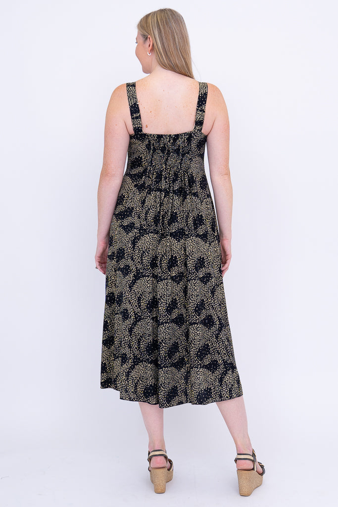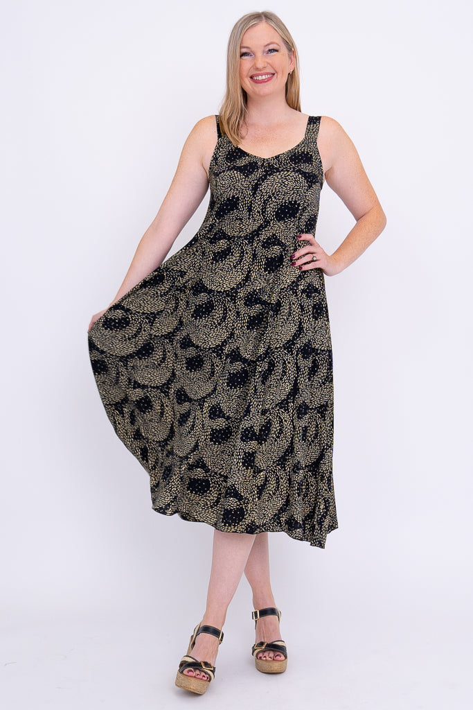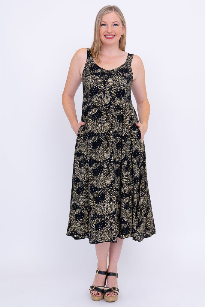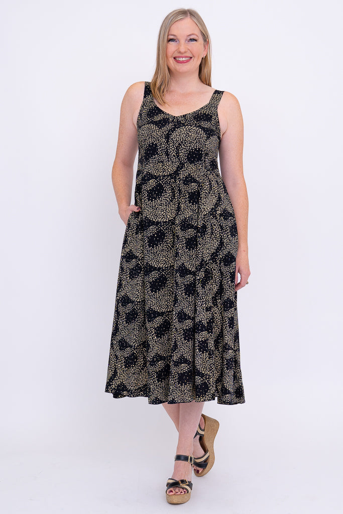 The Shauna is a true Blue Sky favourite. It features an empire waist, A-line skirt and pockets. The back of the bodice is shirred for a perfect fit and enhances all figures. The straps are ample for concealing your bra, so wear it alone or pair it with a shrug for more coverage.
