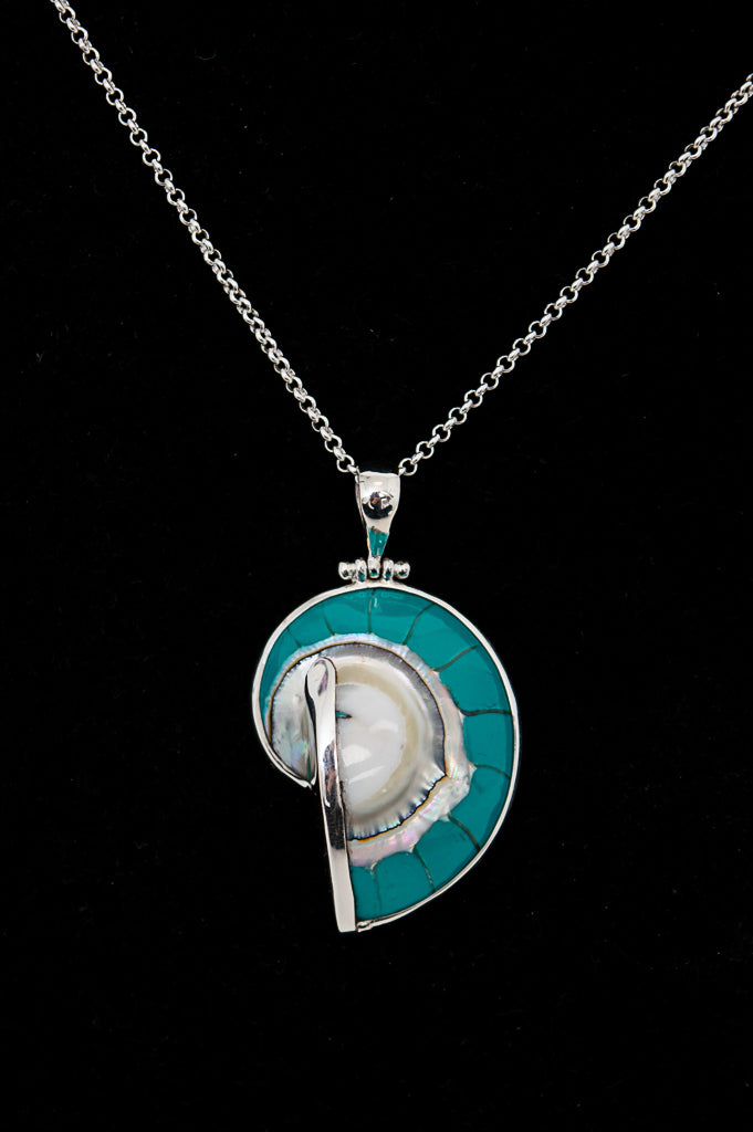 Small Turquoise Nausilus Shell Pendant Necklace - 367