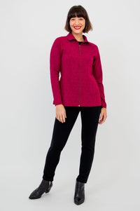 The Sona Jacket is made of Bamboo/Cotton and features a mock neckline with a zip-up closure. Slash pockets sit just above the hem and top-stitch detailing gives a modern touch. Layer the Sona over a long sleeve shirt and a vest over top for extra warmth.