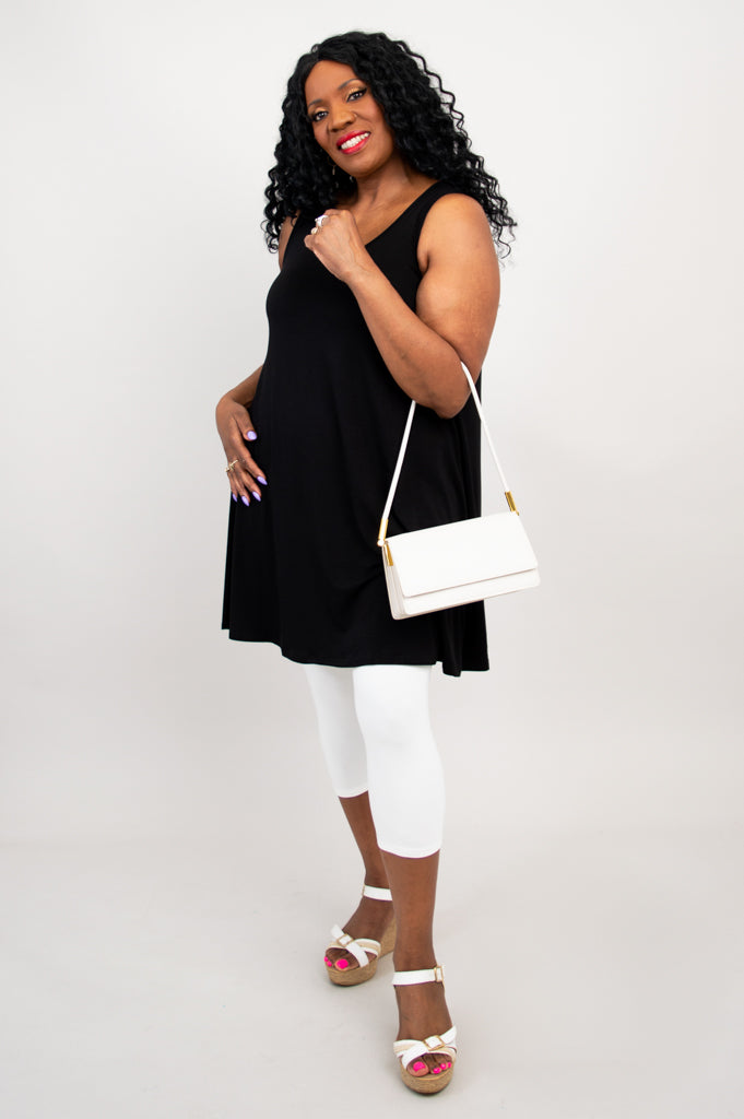 Our Spirit Dress is versatility at it's finest. Simple in design, it can be worn day or night, Summer or Winter. A deep, scoop neckline and wide shoulder straps frame the face. The dress falls into a full, A-line shape that hits mid thigh. Wear it as dress, tunic, with our Instant Sleeves, or throw a sweater on top. The styling options are endless!