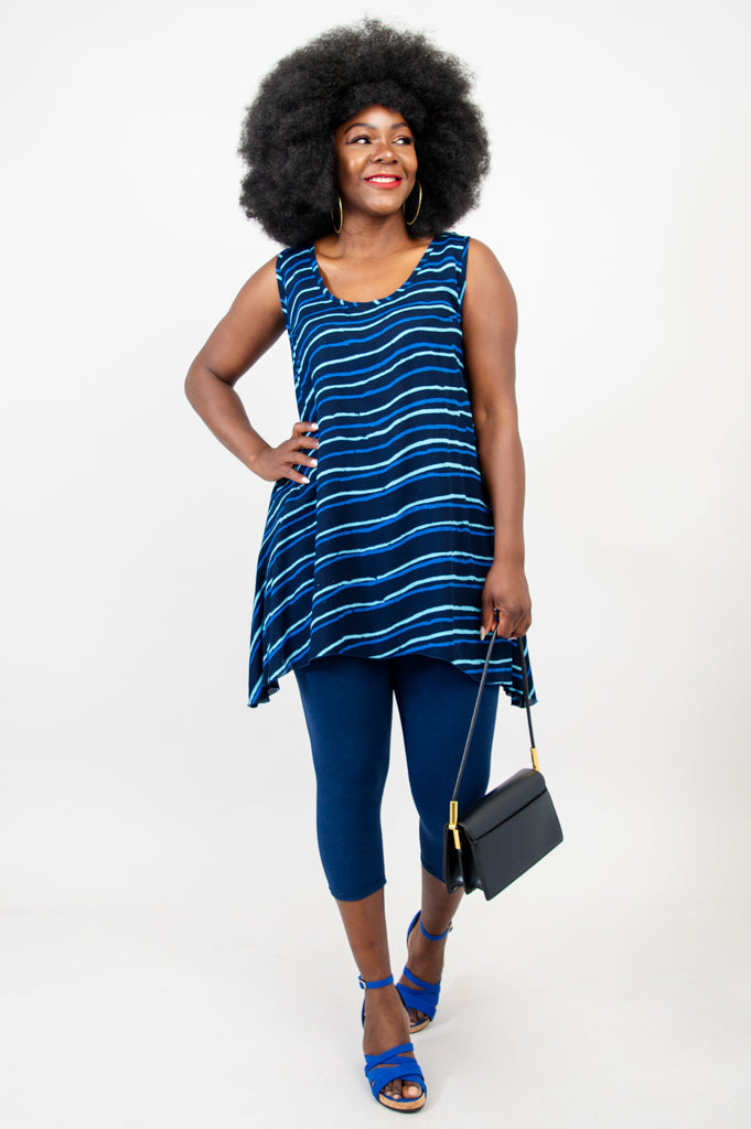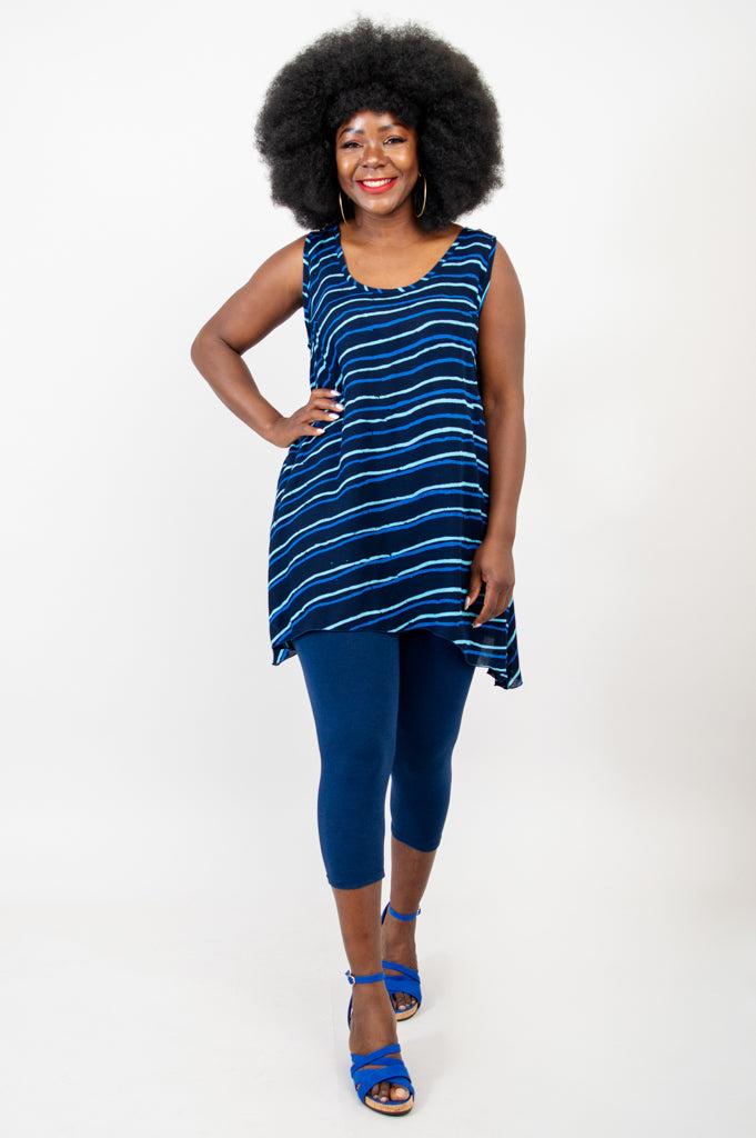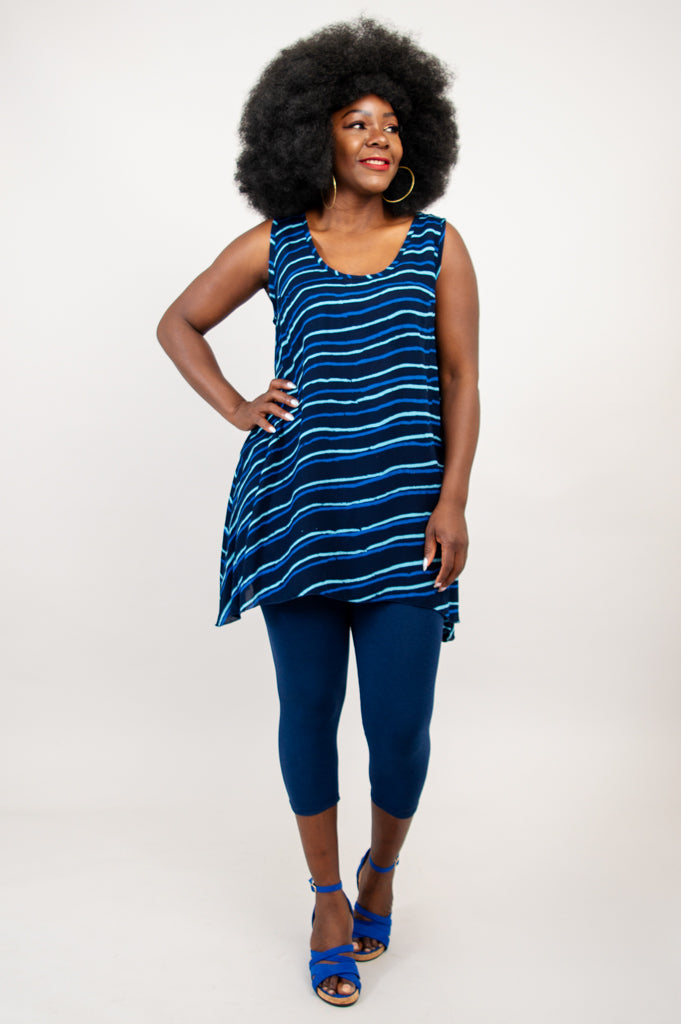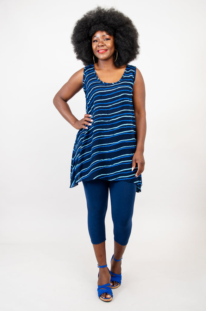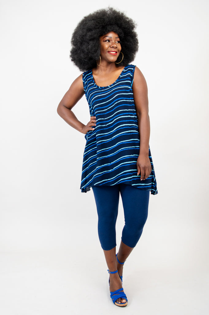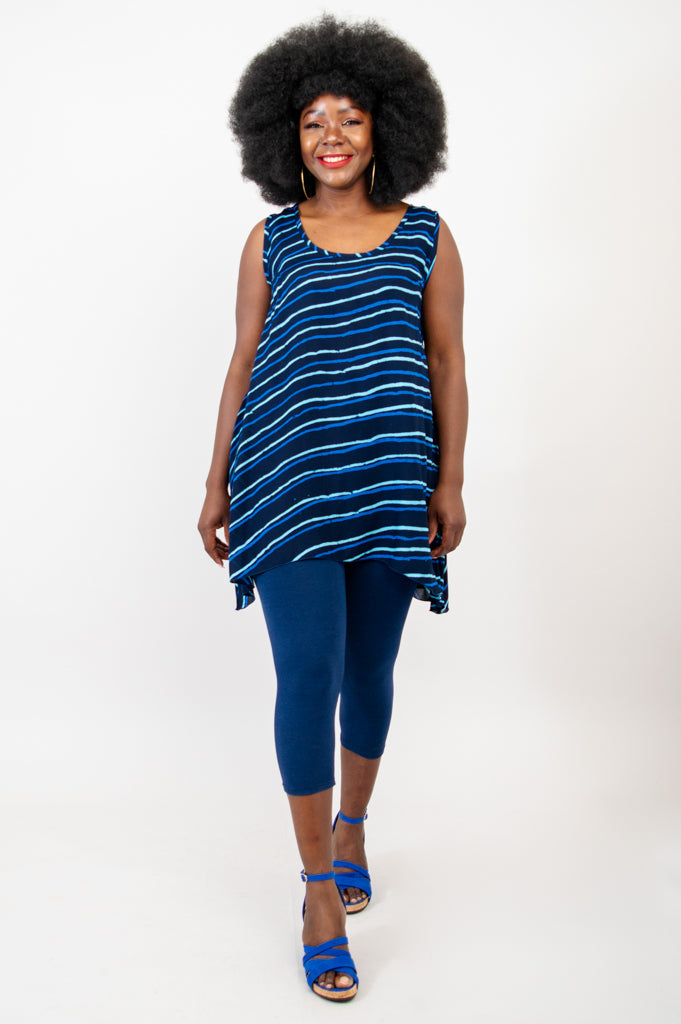 The Swing tank has classic tank top shaping in the shoulders and bust, falling to a soft A-line to mid-thigh. Slightly elongated at the sides, the Swing tank is designed to flow away from the body, ensuring cool freedom of movement. Natural fibre in a lightweight weave makes this tank an excellent travel piece.