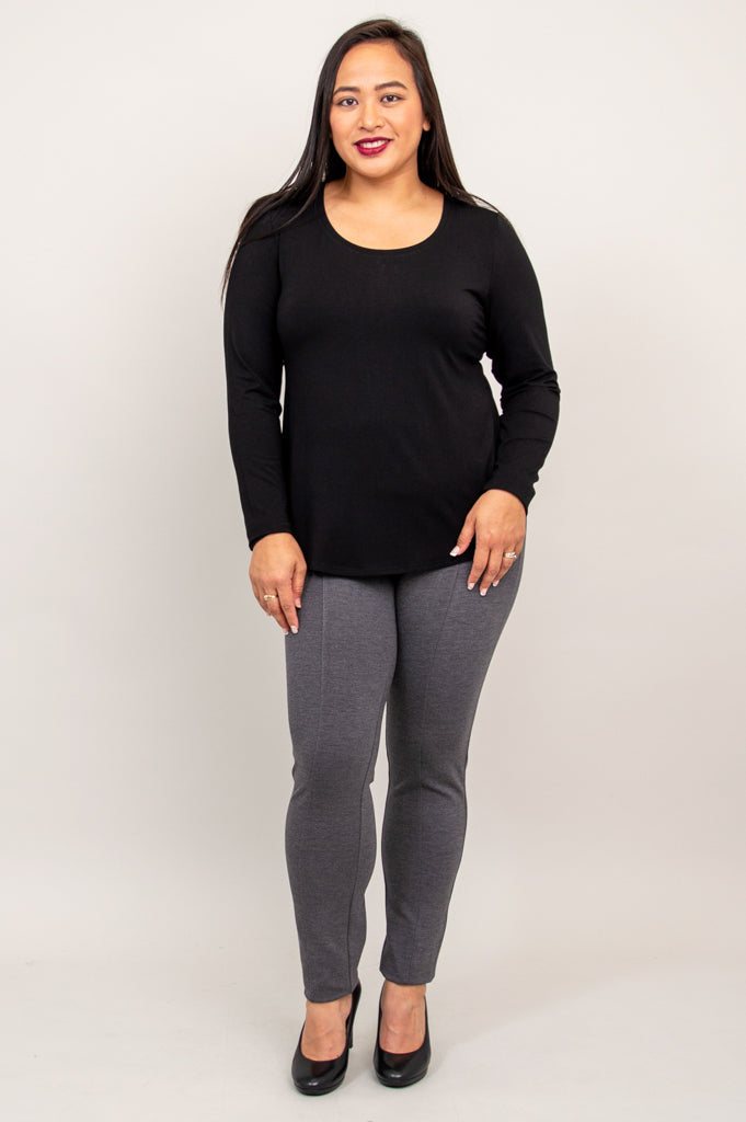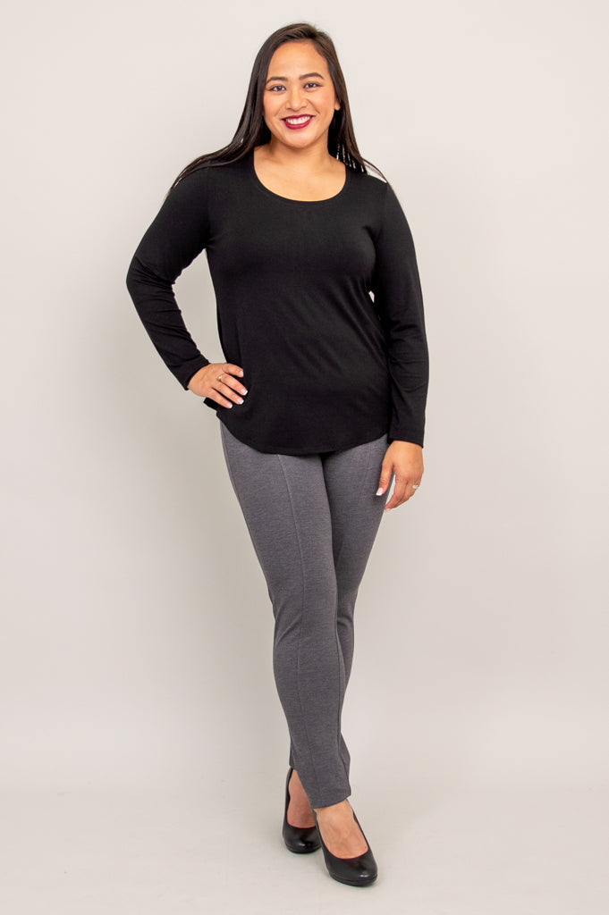 The Tessa Long Sleeve is a classic piece that provides comfort through it's design and our soft, Bamboo fabric. The slightly flowy shape gently drapes to flatter and curved hemline adds coverage.
