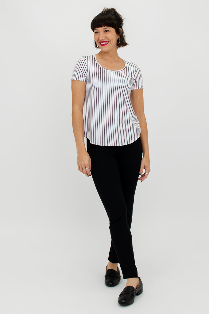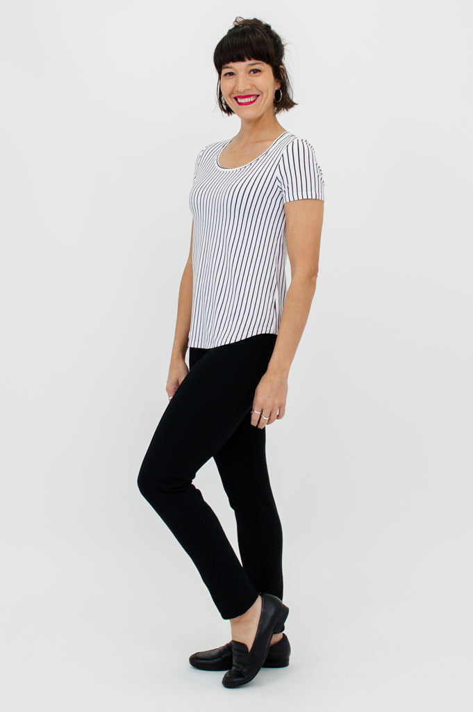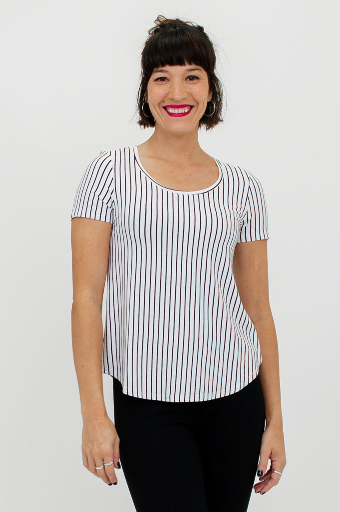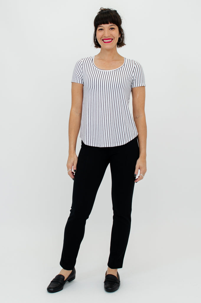 Tessa Tee, White/Black Small Stripe, Bamboo- Final Sale