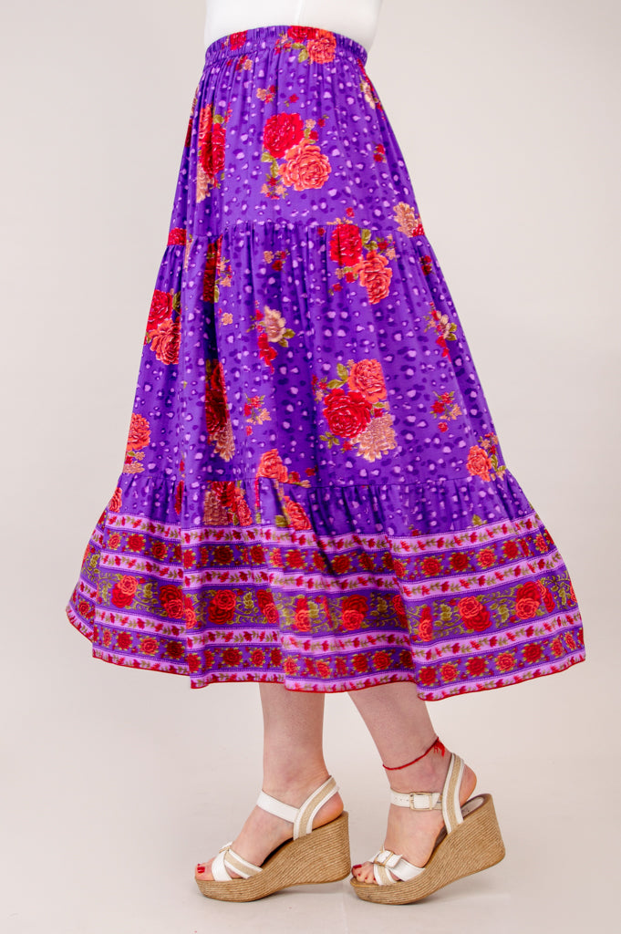 Our Tier Skirt has 3 tiers for added volume, and an elastic waist band so you can move through the day with ease.