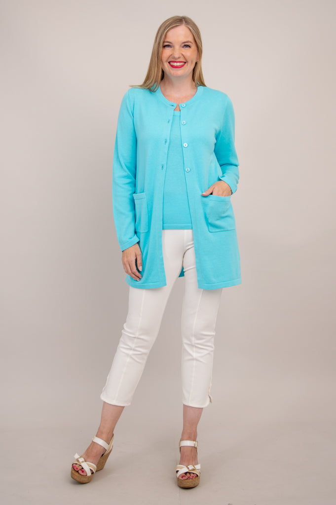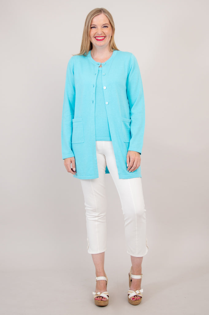 Tommy Cardigan, Turquoise, Cotton
