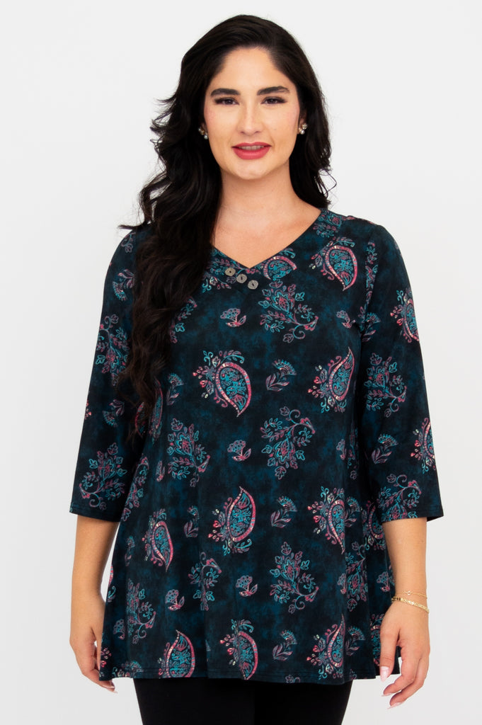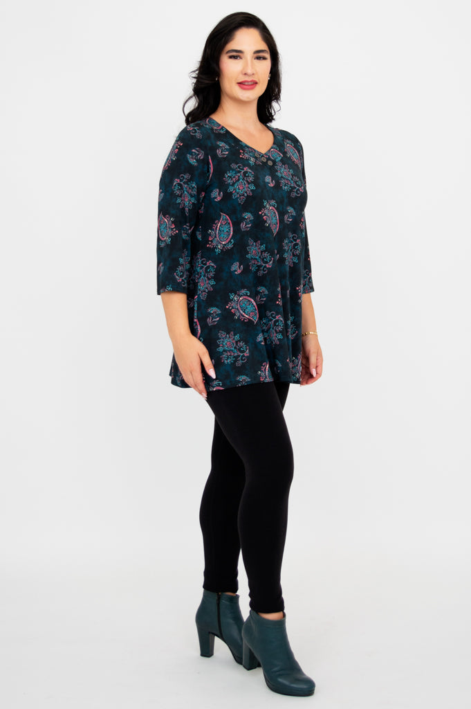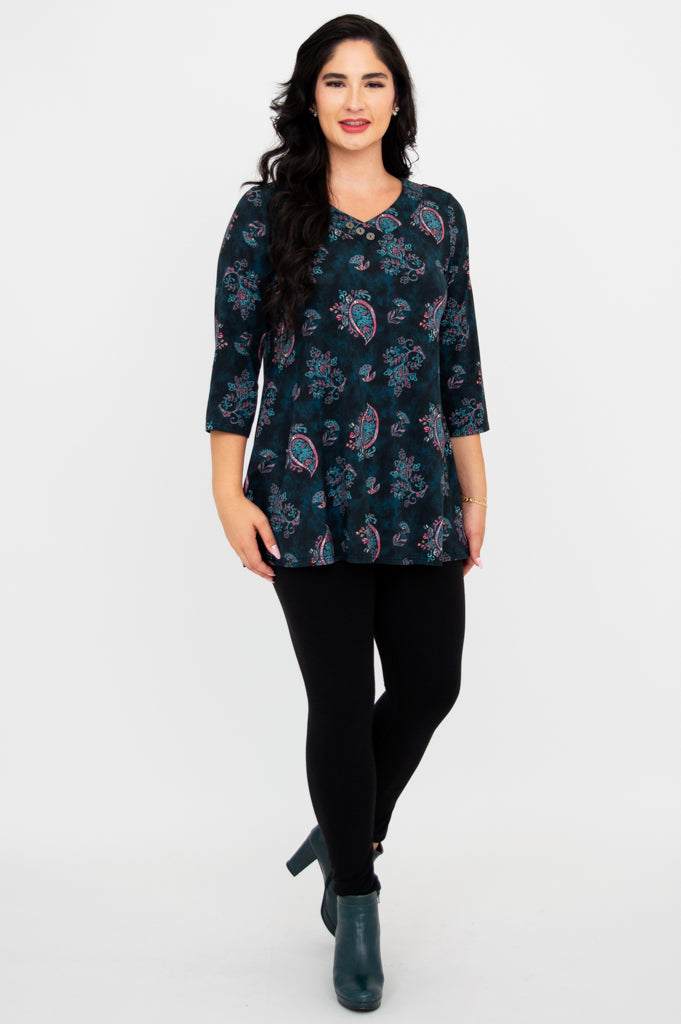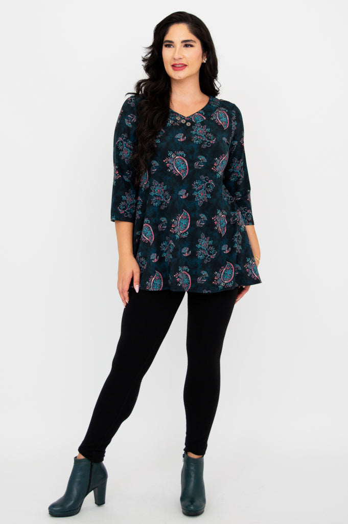 Designed with 3/4 length sleeves and an A-line silhouette, the Vana Tunic is a wearable work of art that pairs effortlessly with tights and knee-high boots, creating a look that's as unique as you are. Whether you're strolling through an art gallery or exploring the city streets, this tunic is sure to turn heads!