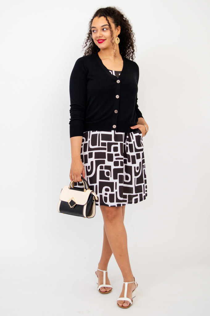 A scoop neckline and wide shoulder straps ensure a smooth canvas for layering or accessorizing. Pockets are inset at the hip, and roomy enough for your essentials. The Velma cascades down the body to the knee, ending in a slight flare.