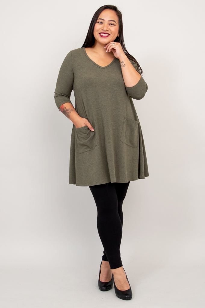 Veronica Tunic, Yarn Dye Khaki, Bamboo - Final Sale