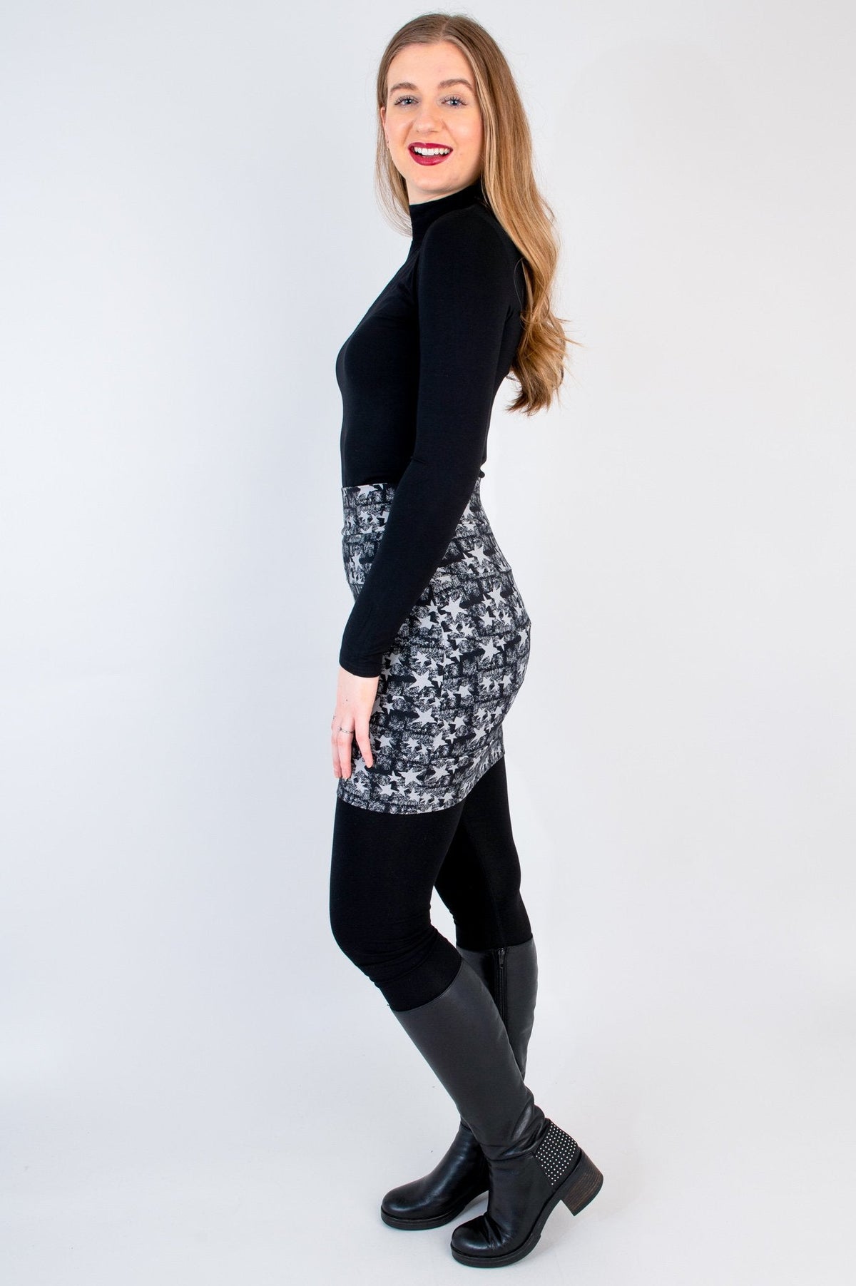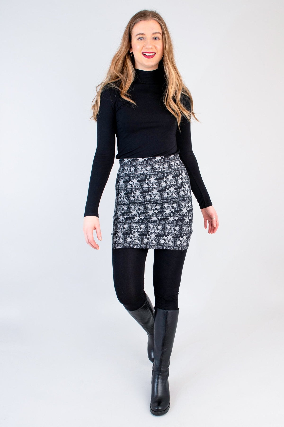 Love your leggings? Convert your favourite sweater or tee into tunic length with the Whistler, our 'privacy skirt'. This piece provides those few inches of length needed to wear that great sweater over leggings and boots. A short version of our Jonelle, the Whistler fits close to the body, forming to your shape for an excellent body-con finish.