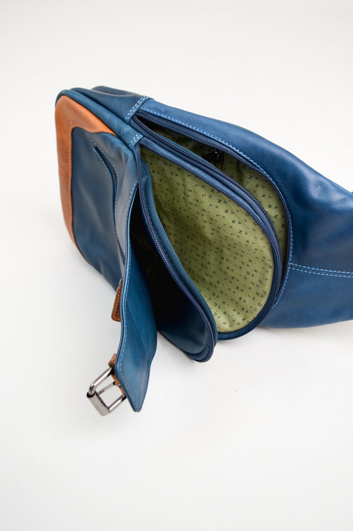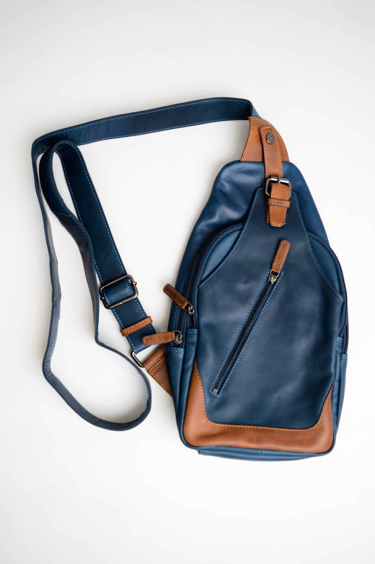 Adrian Klis 1854 Sling Bag, Blue/Tan, Buffalo Leather