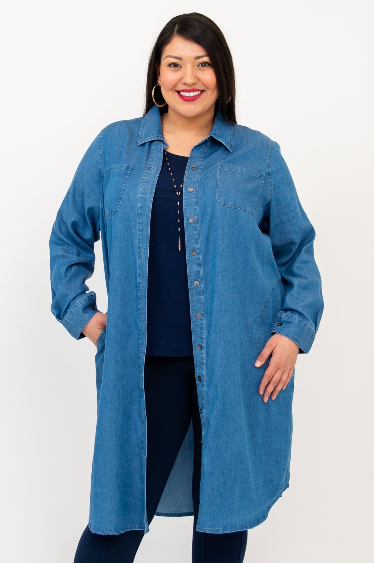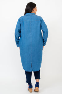 Our Anka duster is lightweight and made from our 100% plant-based Tencel. It features inseam pockets, button closure and a shirttail hem. It can be worn buttoned up or open over your favourite pant and top.
