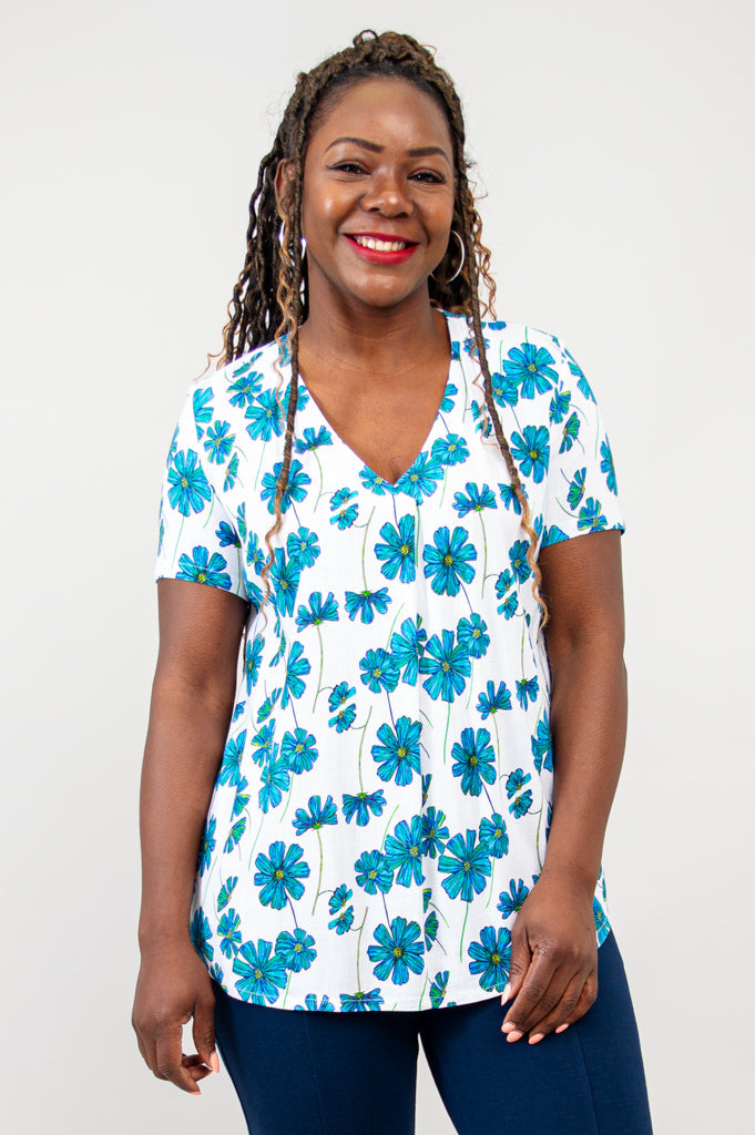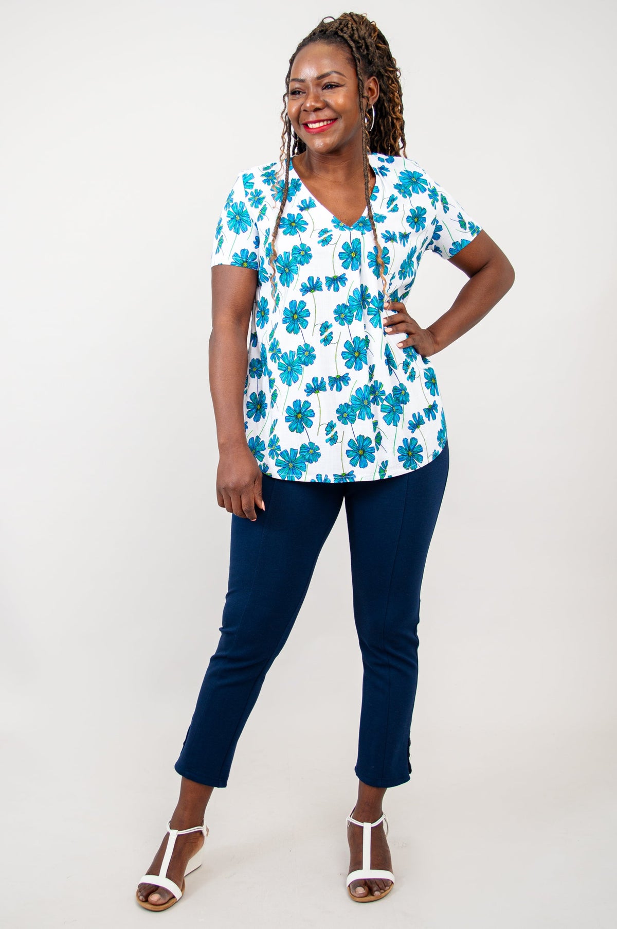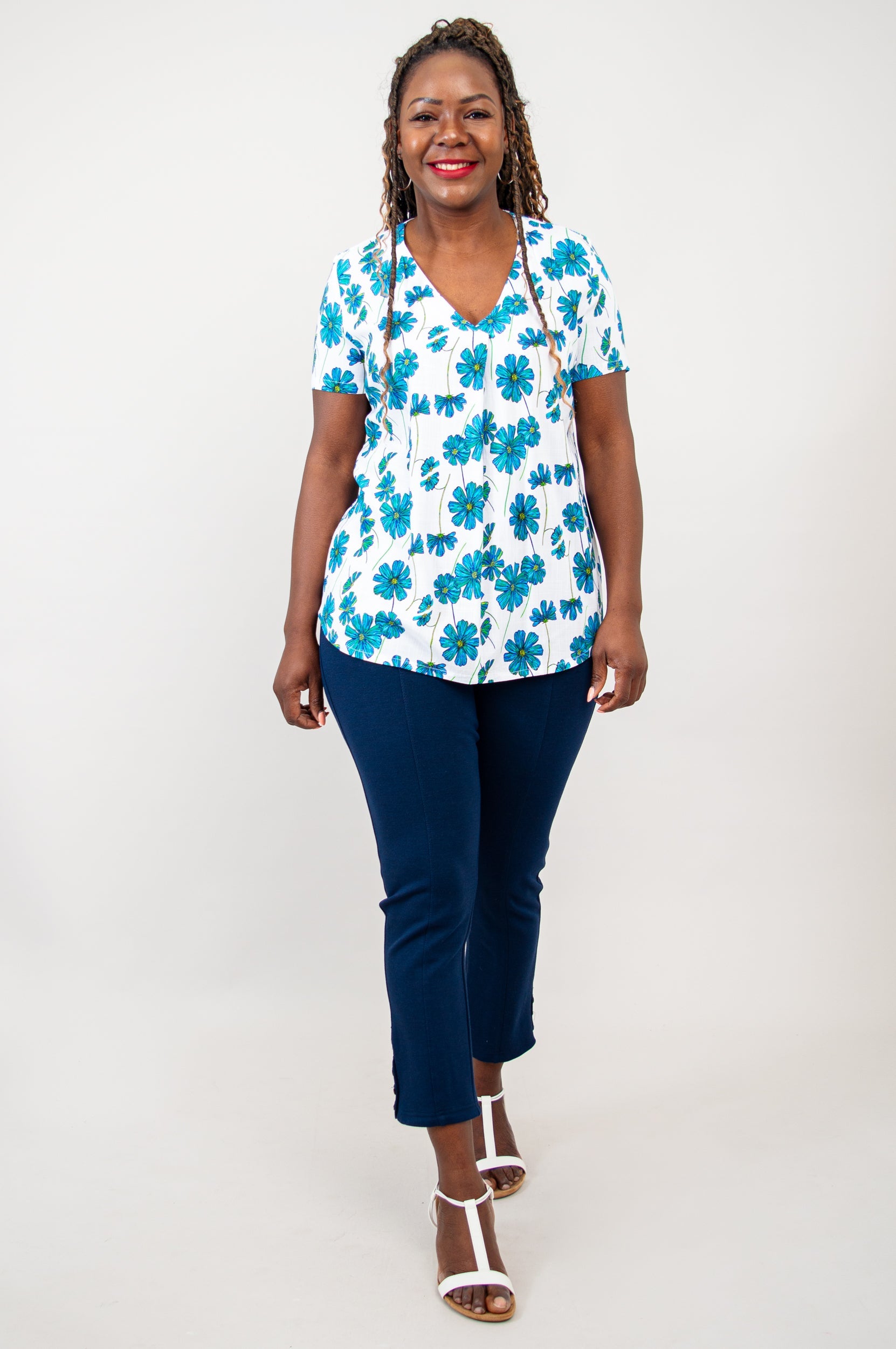 Made of soft and cool natural fabric, the Bailey is a step up from your average tank top. A fold-over pleat at the centre-front of the garment gives it a generous drape and extra room through the mid-section. Pair it with capri pants and sandals for an easy Summer look.