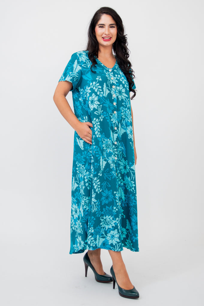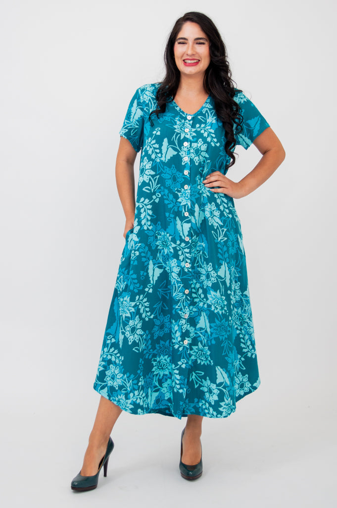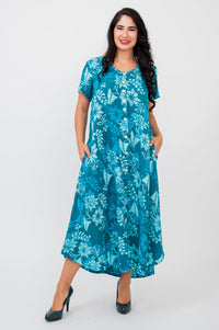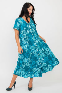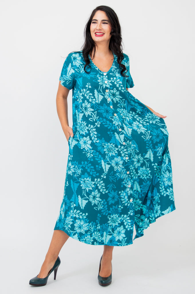 The Cassy Dress has an A-line shape with a lot of swing. Short sleeves and pockets make this dress versatile and comfortable.
