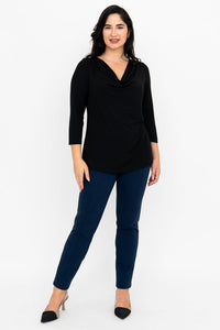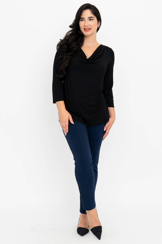 The Charisse features a cowl neckline that frames the face. The cowl is double layered to prevent pulling on the bust. Pair this with a pant or skirt for an elevated or dressy look.