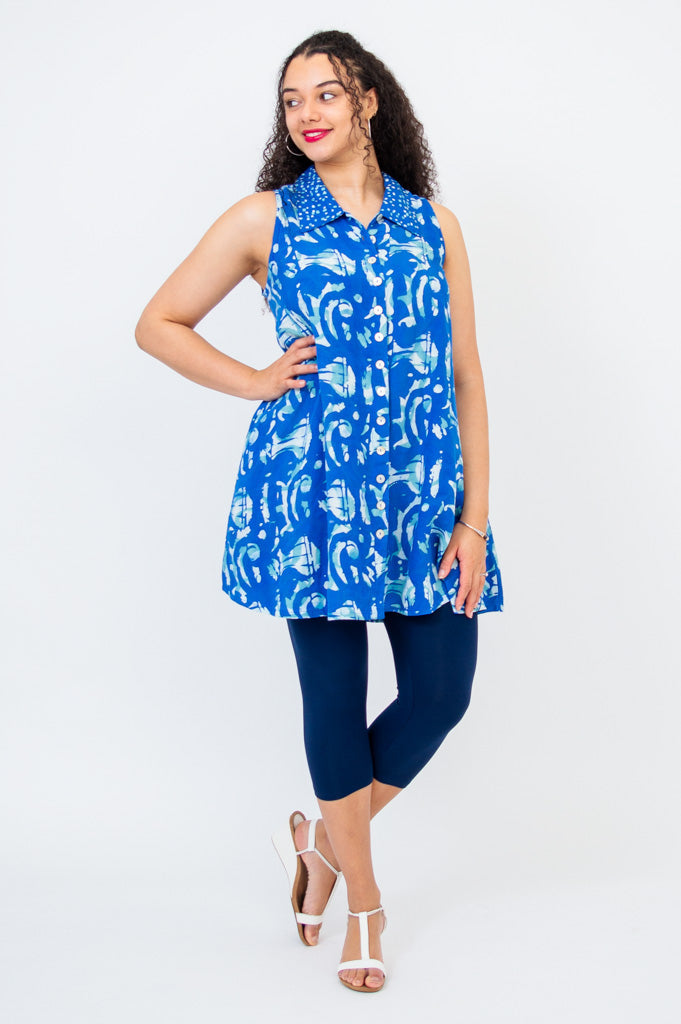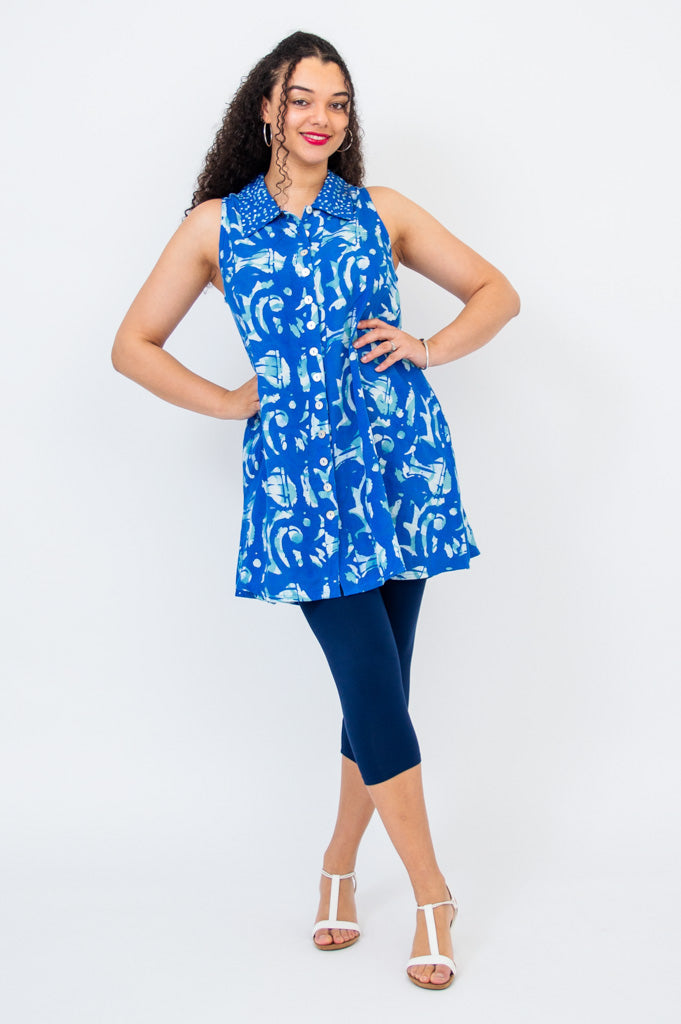 The Cissy Tank is A-line with a lot of swing and the features of a button up shirt.  The light fabric makes this the perfect summer or vacation piece.