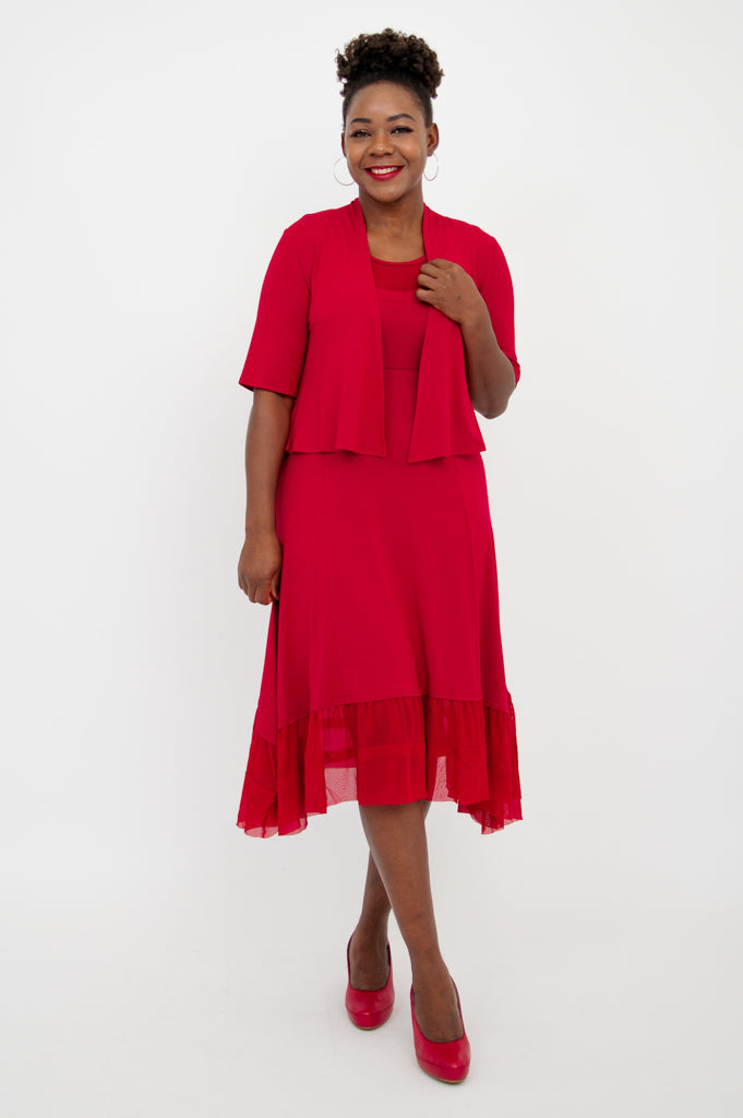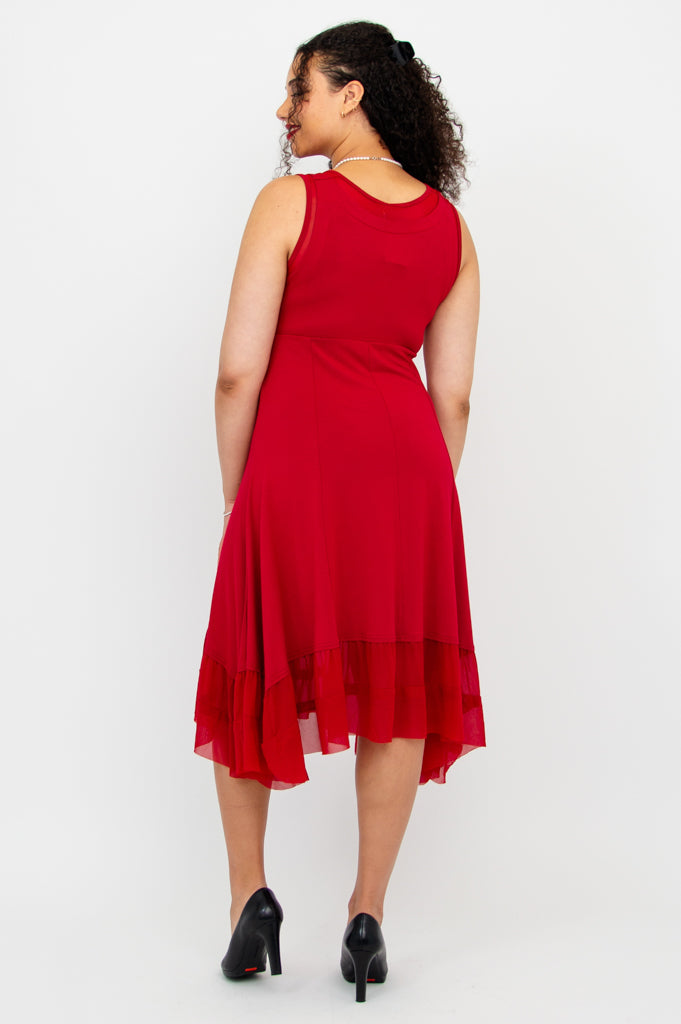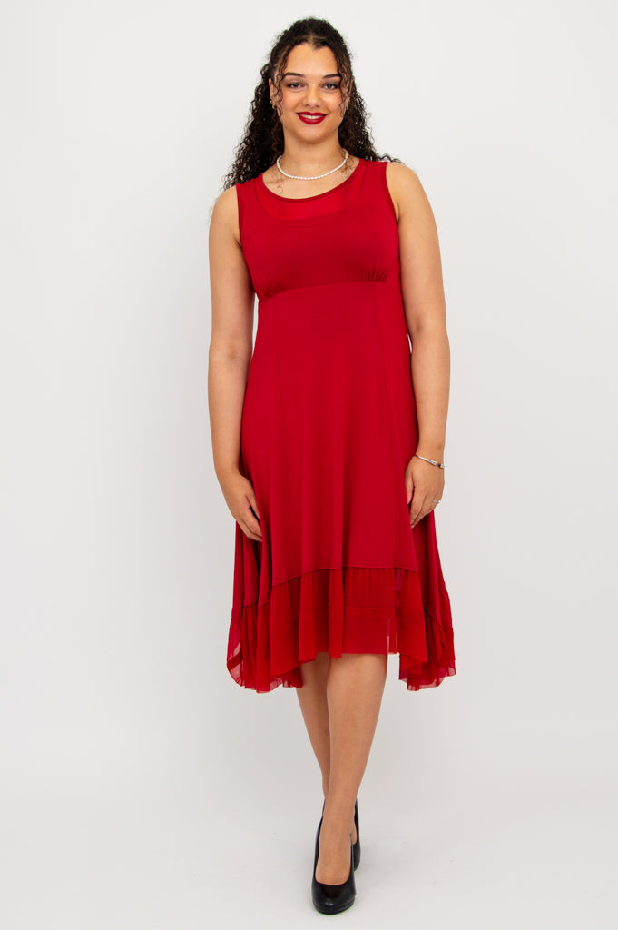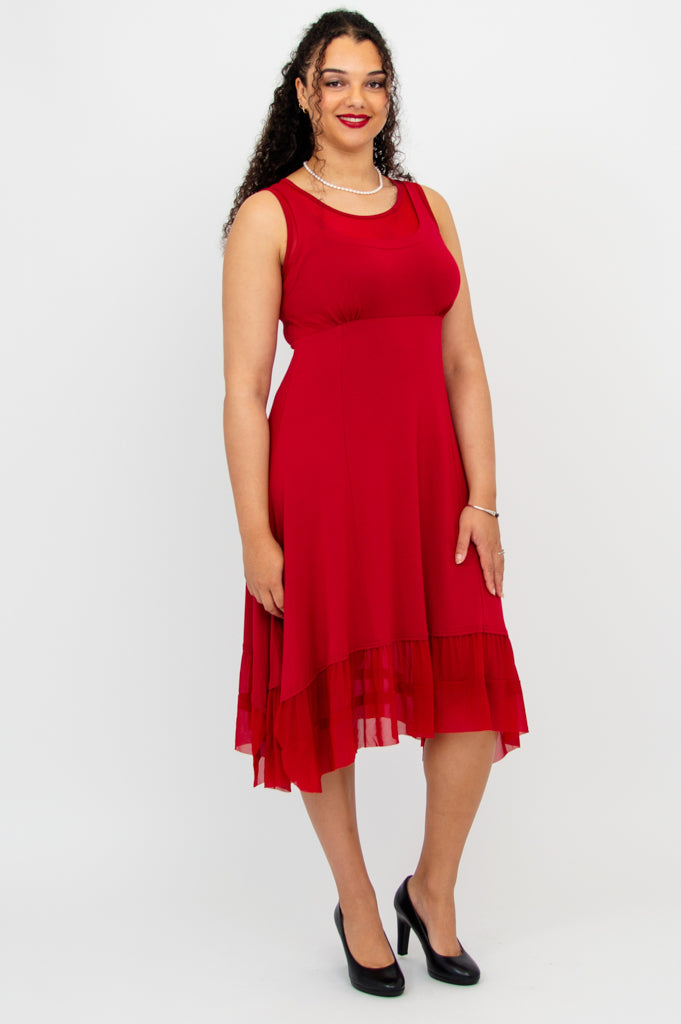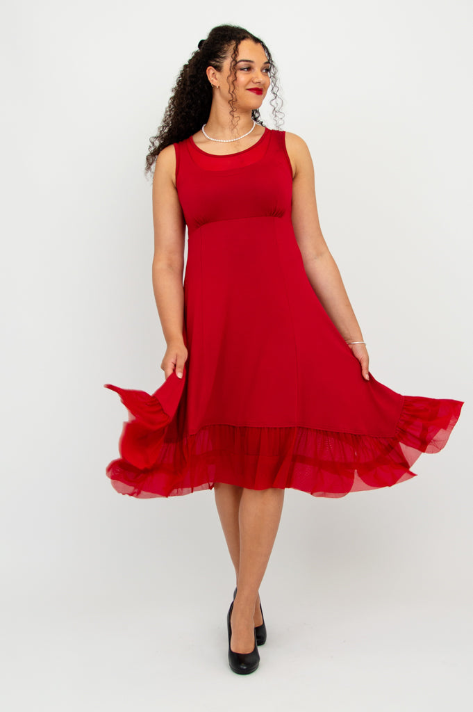 The Danube Dress features mesh underlay and hemline to give the illusion of layering and a play on texture. The empire waist and fitted bodice contour the body for a refined look. The A-line skirt has the right amount of flounce for dancing and the bamboo fabric feels oh so soft.