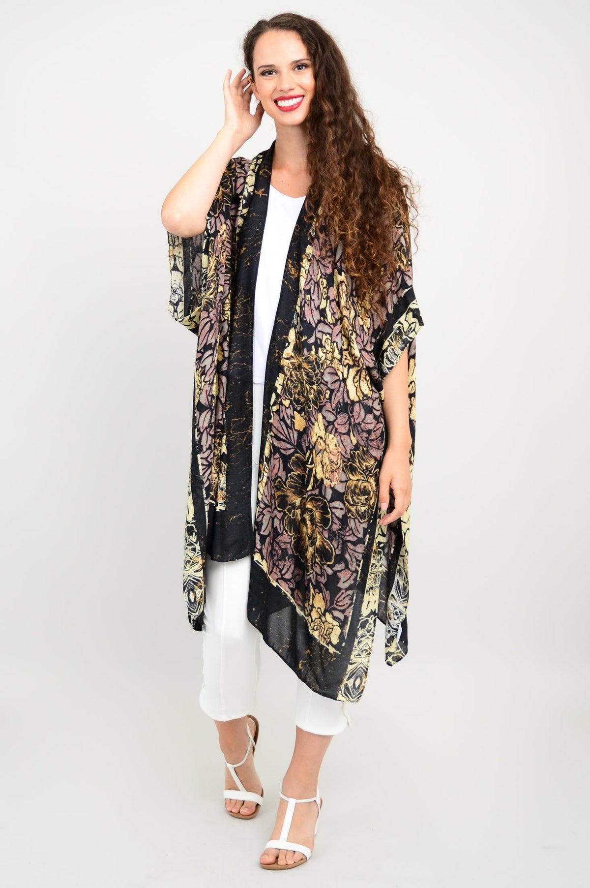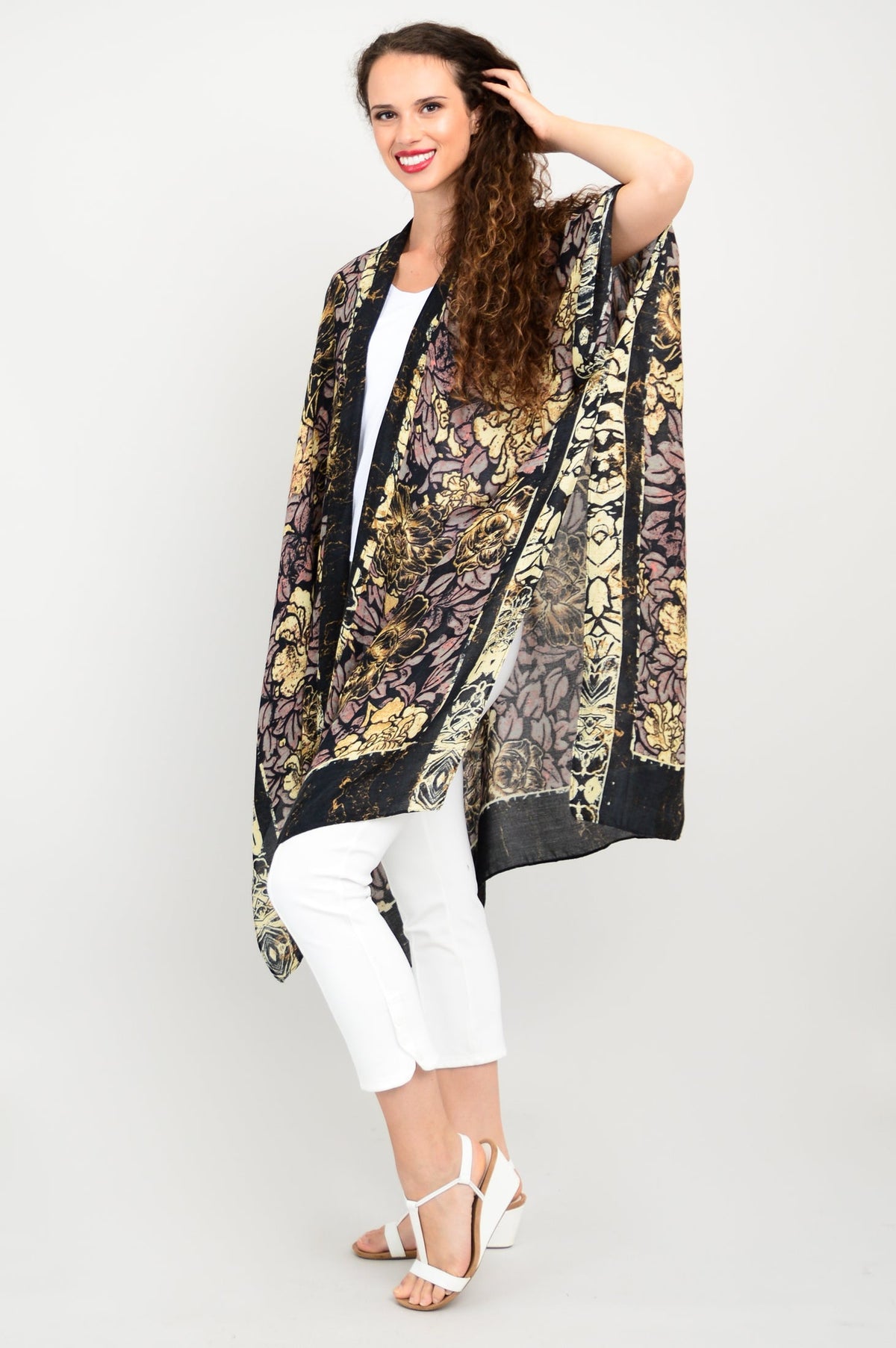 Casually elegant evening wrap, beach cover-up, or lounge wear.