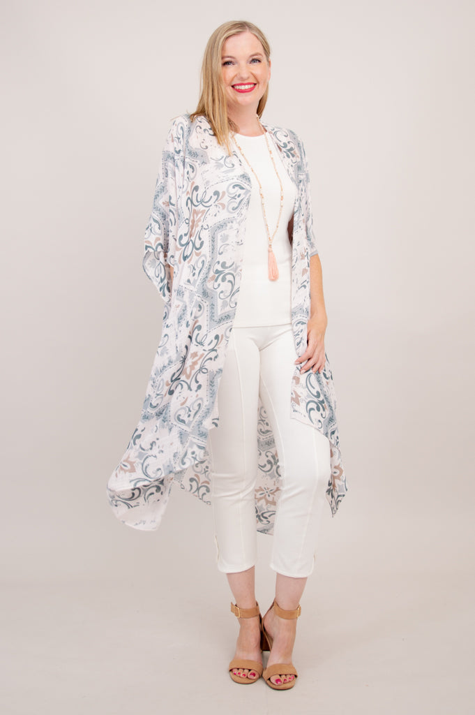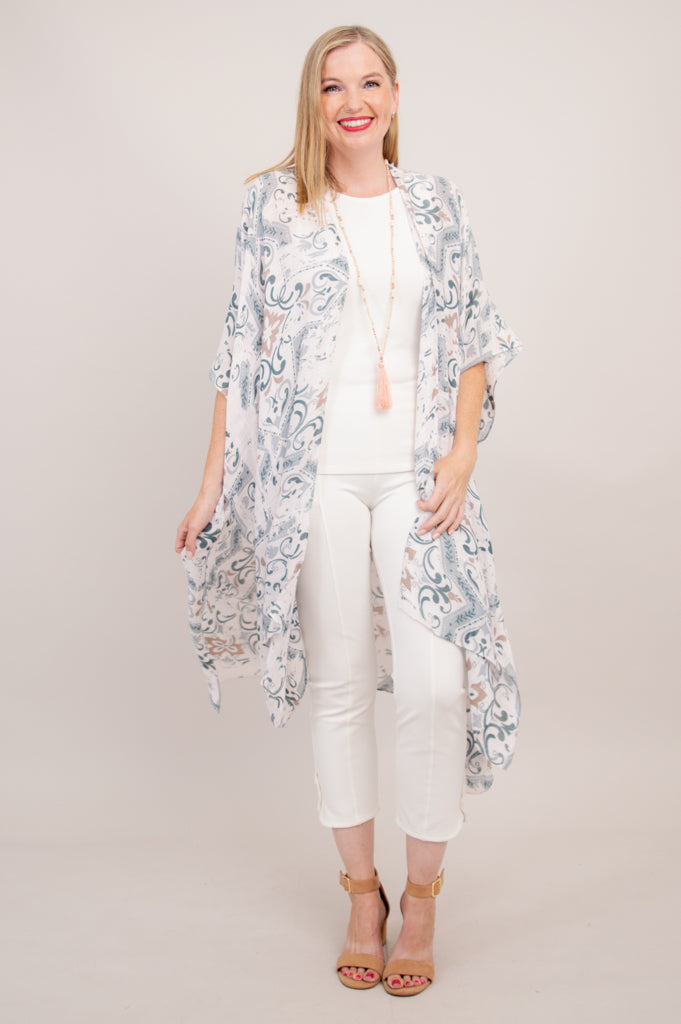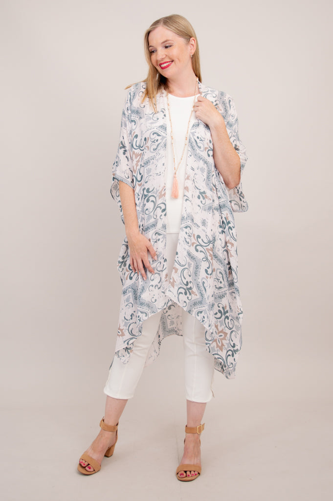 Casually elegant evening wrap, beach cover-up, or lounge wear.