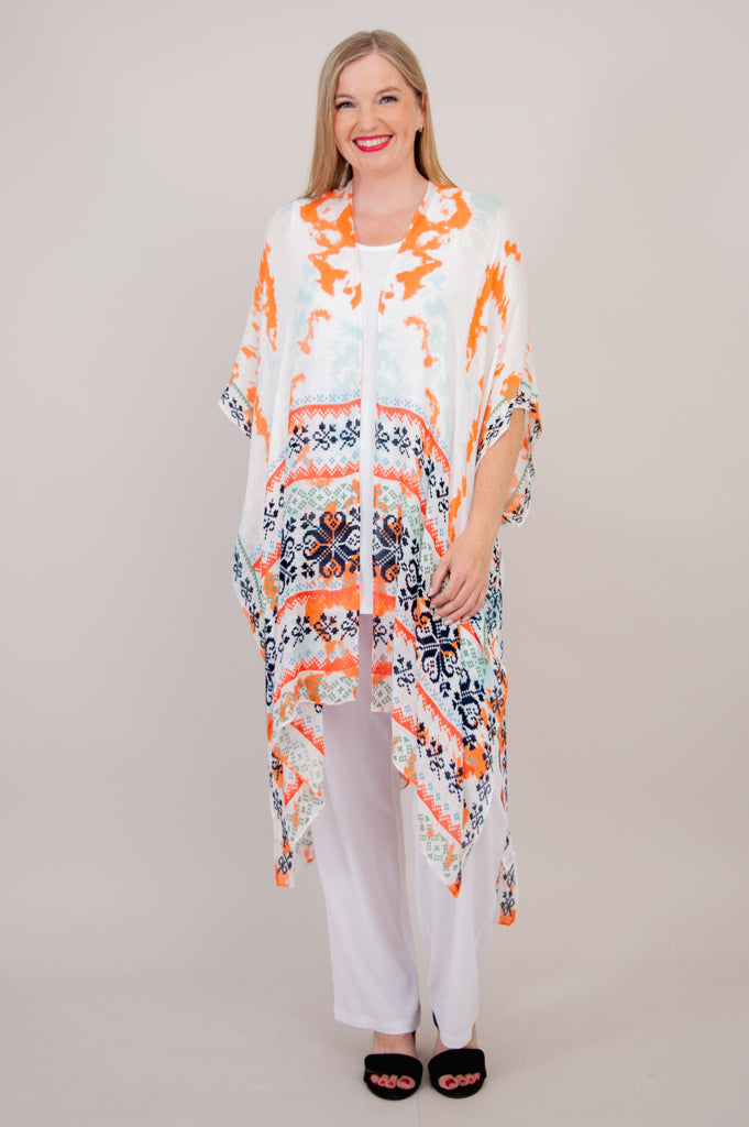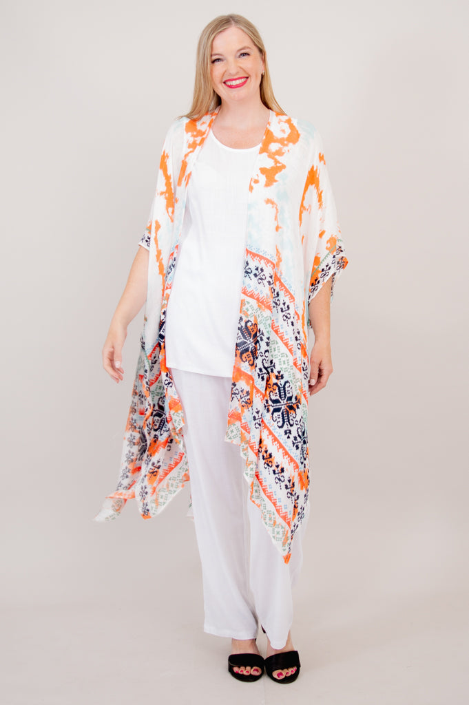 Casually elegant evening wrap, beach cover-up, or lounge wear.