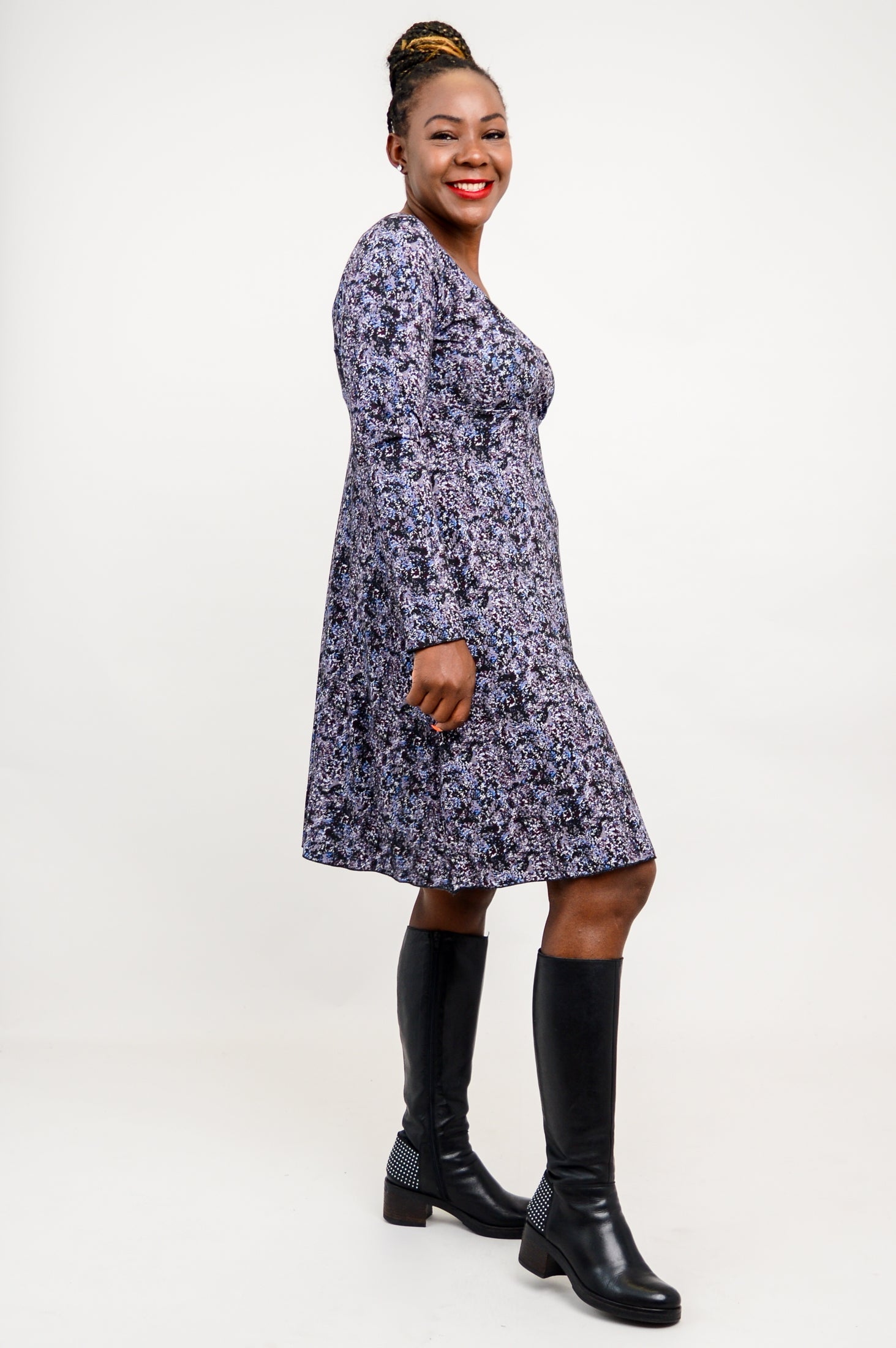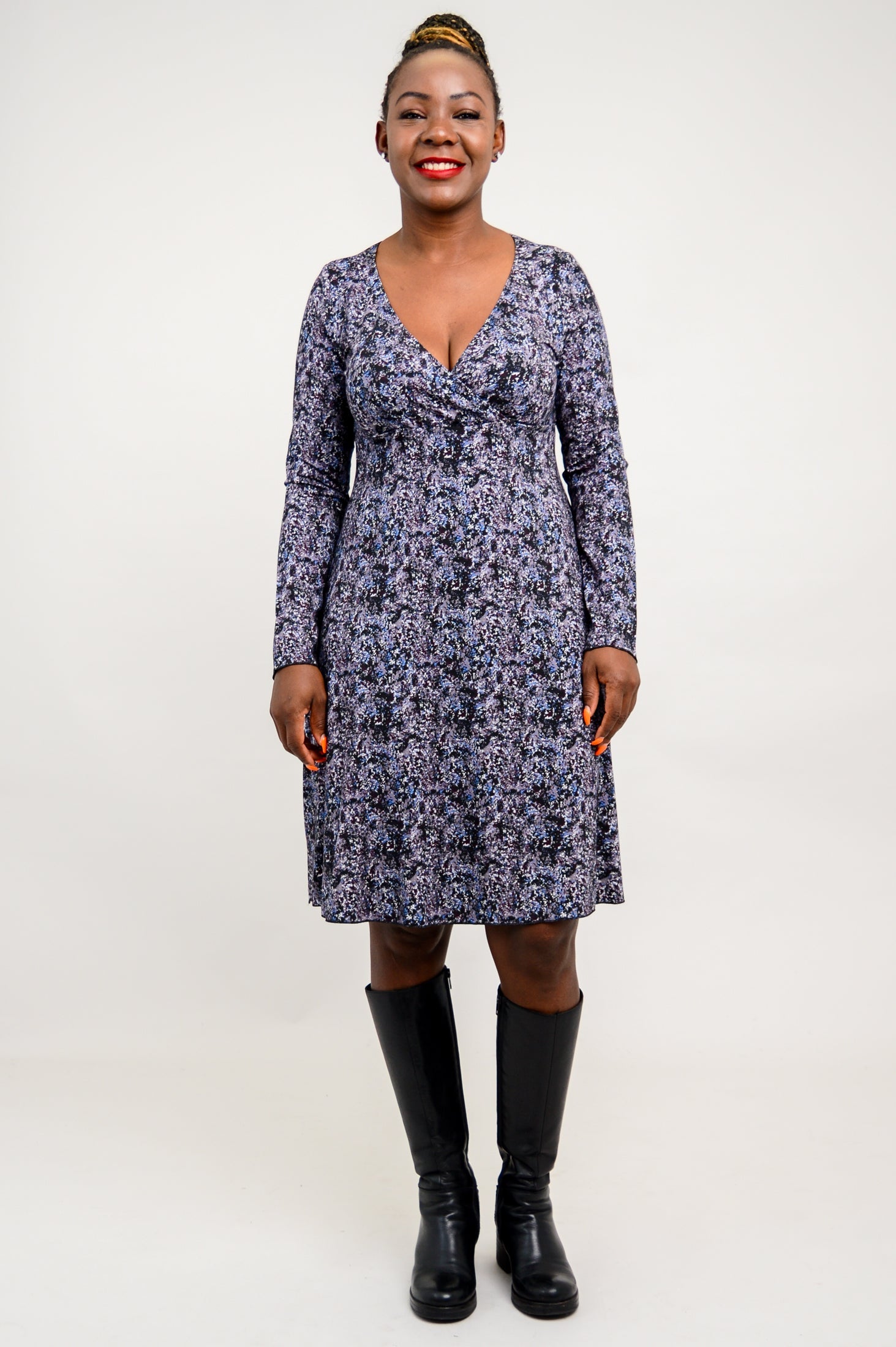Classic dress style, with a stretch that retains its shape, thanks to our Bamboo/Cotton fabric. Long sleeves and an empire waist elongate the body. A V-neckline frame the face, and provides the space for accessories. The Denver is designed to give extra room where needed, without excess fabric, which makes layering a breeze during Winter months.