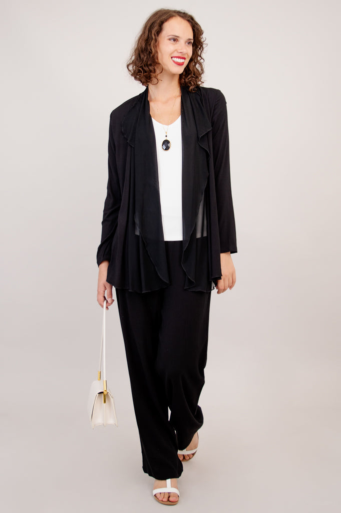 The Diana Jacket is an open style layering piece made of lightweight, breathable linen/bamboo fabric. It's perfect for adding a subtle over a tank or over a dress. Enjoy the look and feel of this modern, versatile piece.