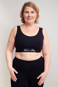 Blue Sky's comfort bra. No more sticky, hot polyurethane foam cups - instead, try our cool, breathable Bamboo/Cotton against your skin.