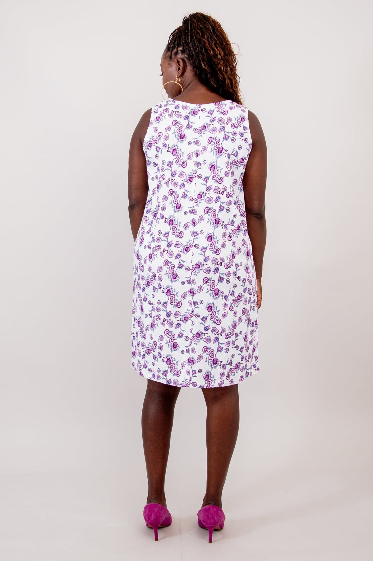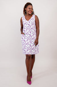 The Felicia Dress is a straight cut shift dress featuring a V-neck, front pockets and falls just below the knee. Simple elegance on it's own or pair with a denim jacket or your favourite cardigan.