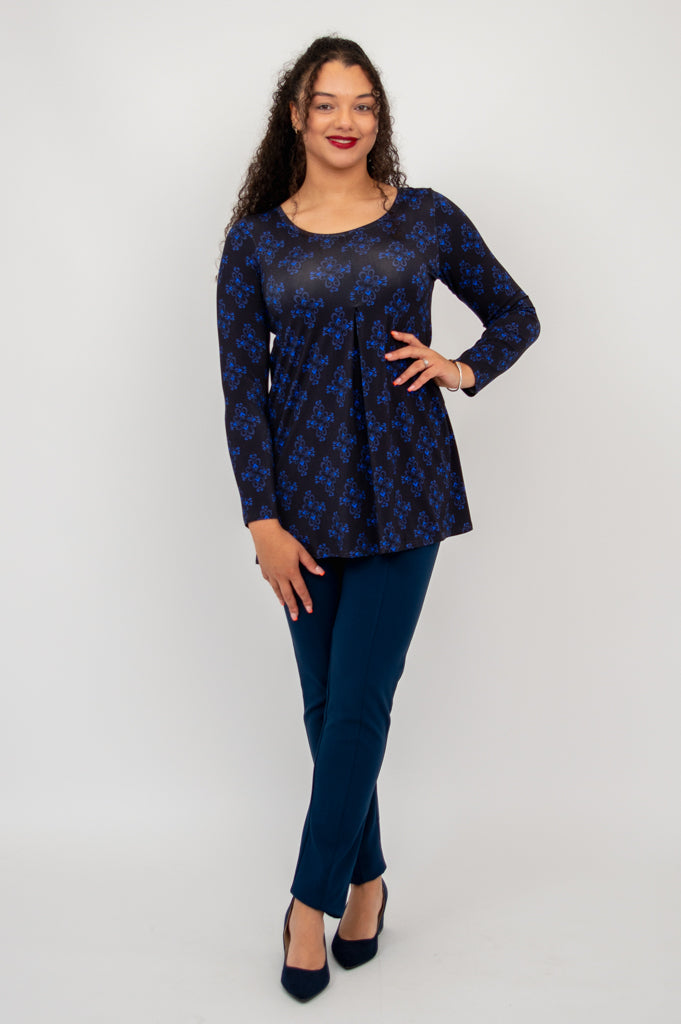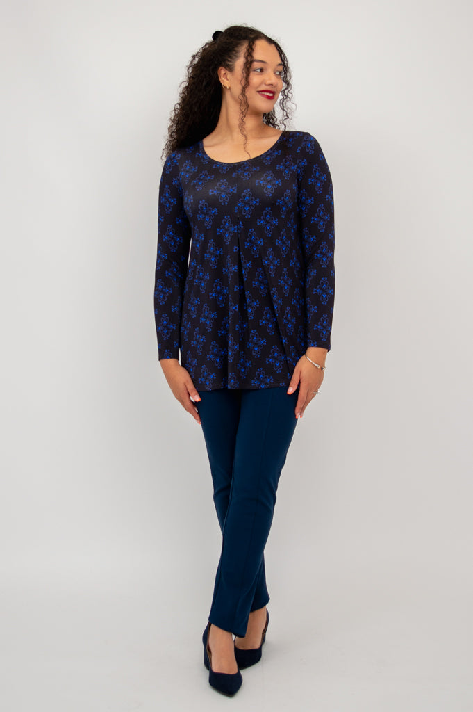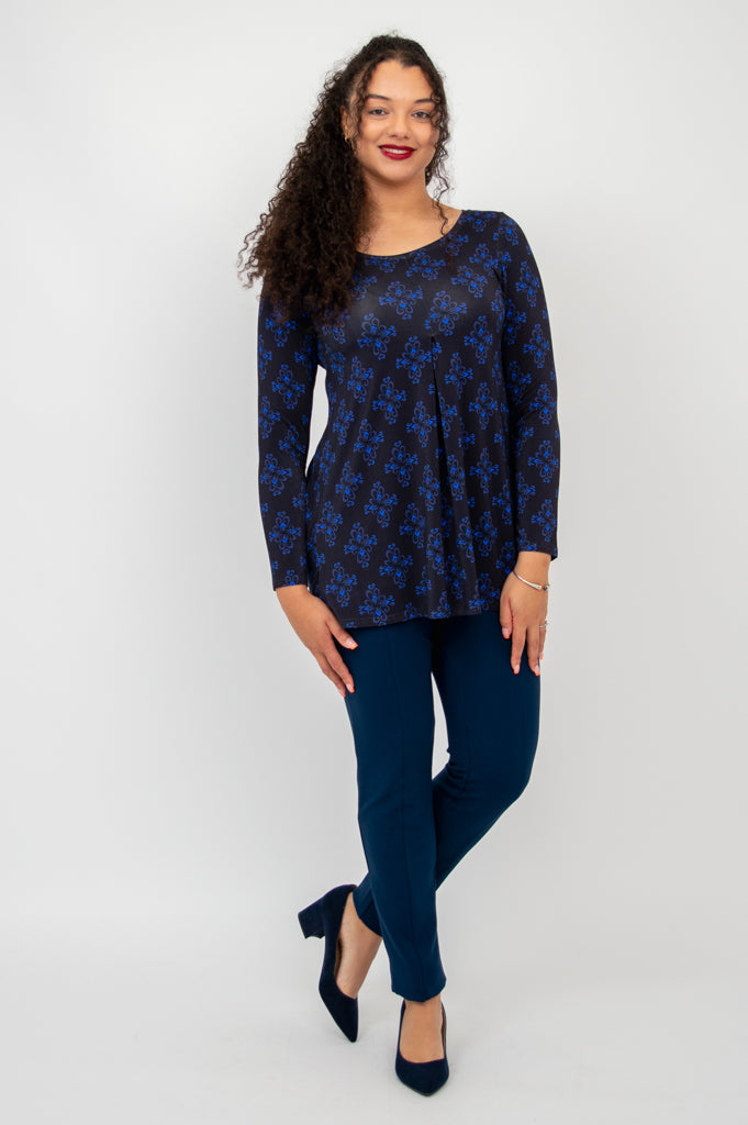 You can thank a deep pleat, at the centre-front of the top, for it's forgiving drape. The Franca has a slight scoop neckline and an A-line shape, with a hem that falls to the high thigh. A great match for a variety of bottoms, and slim-fitting enough for layering under sweaters, jackets and coats.