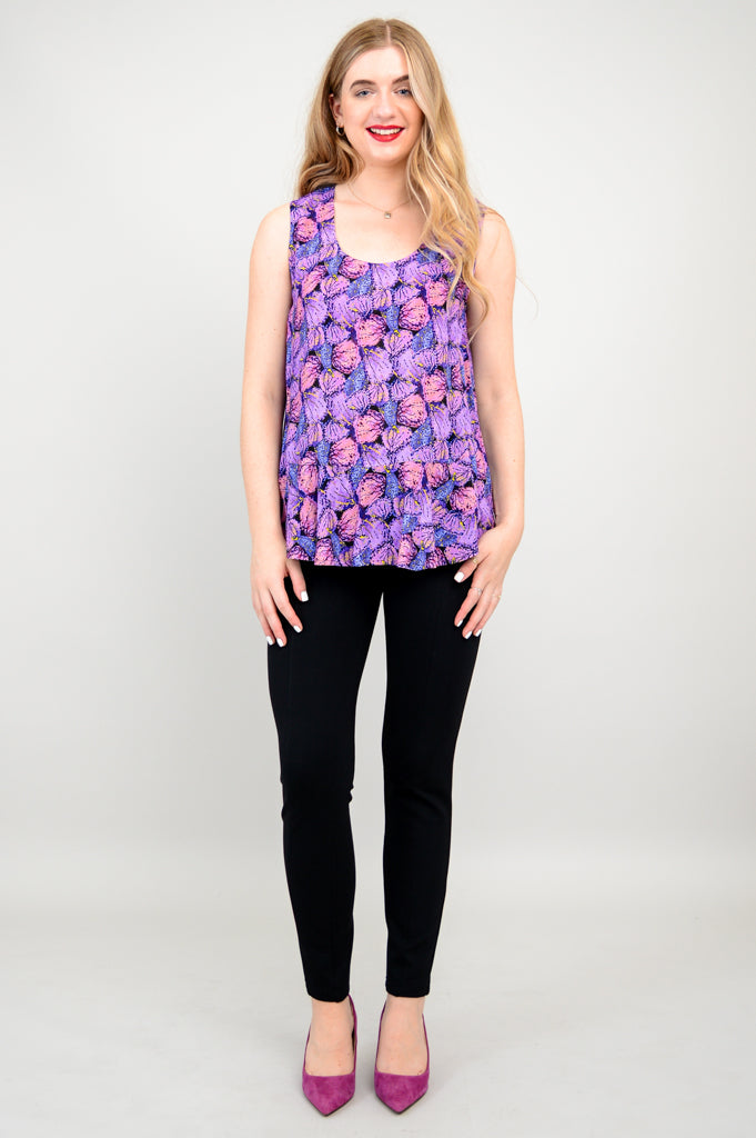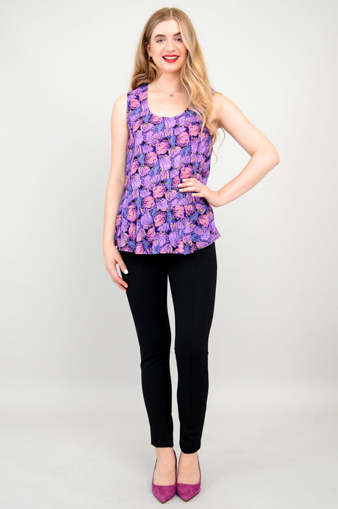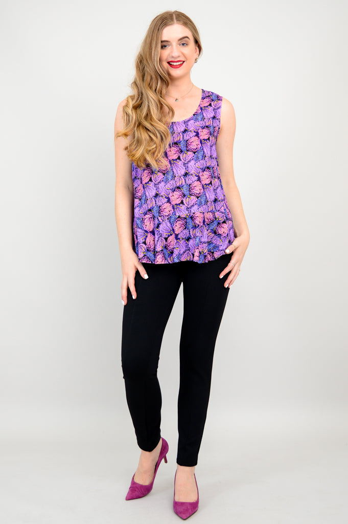 Our Ginny Tank balances comfort with a touch of feminine style. It features a deep, U-neckline, wide shoulder straps and a slight peplum hem at the hips.