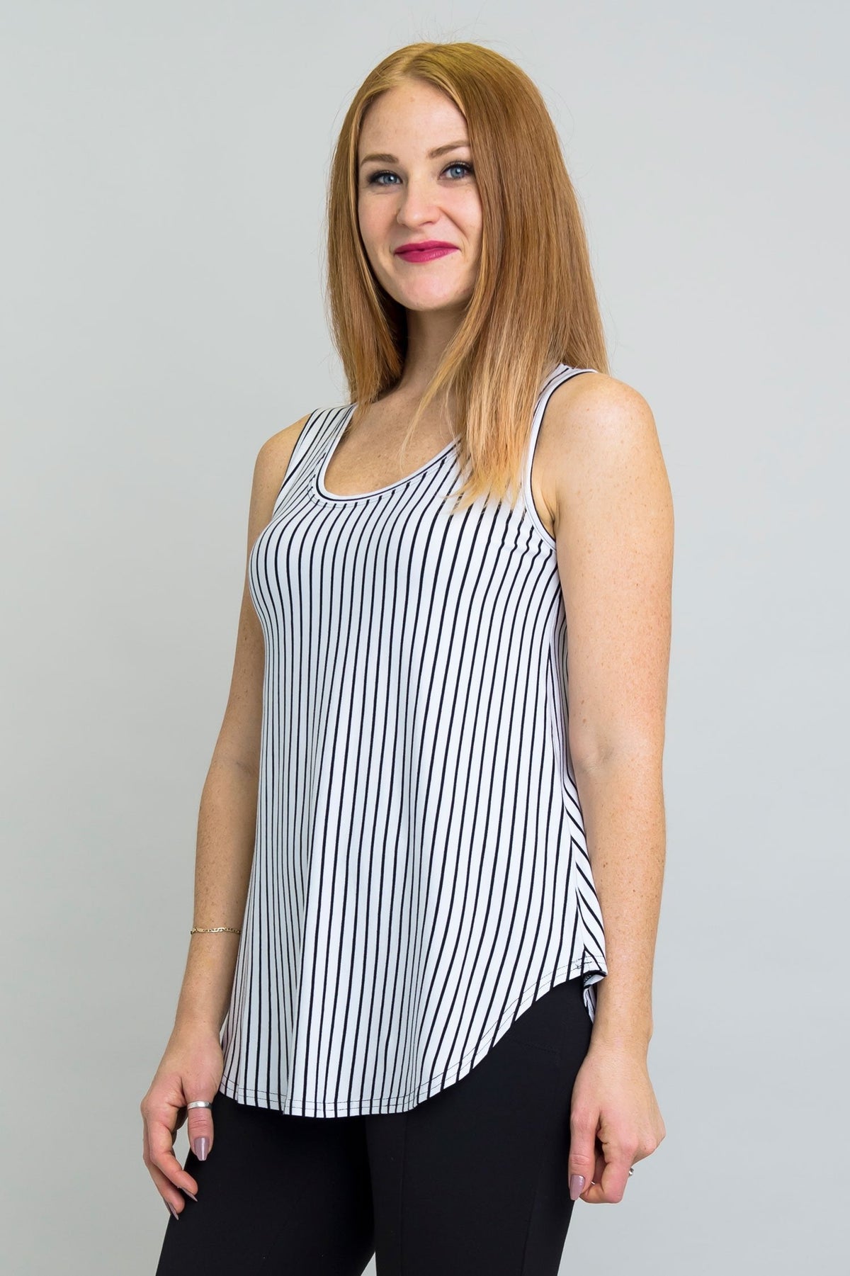 Women - TankJazz Tank, White/Black Small Stripe, Bamboo - Final Sale