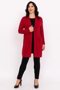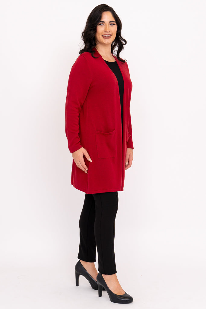 Our beloved Justine Sweater is wardrobe must-have! An open style cardigan with pockets for functionality and long, slimming lines. The Justine is designed to fall a bit lower, allowing for good coverage. Layer it over dresses, blouses and sleeveless tops.
