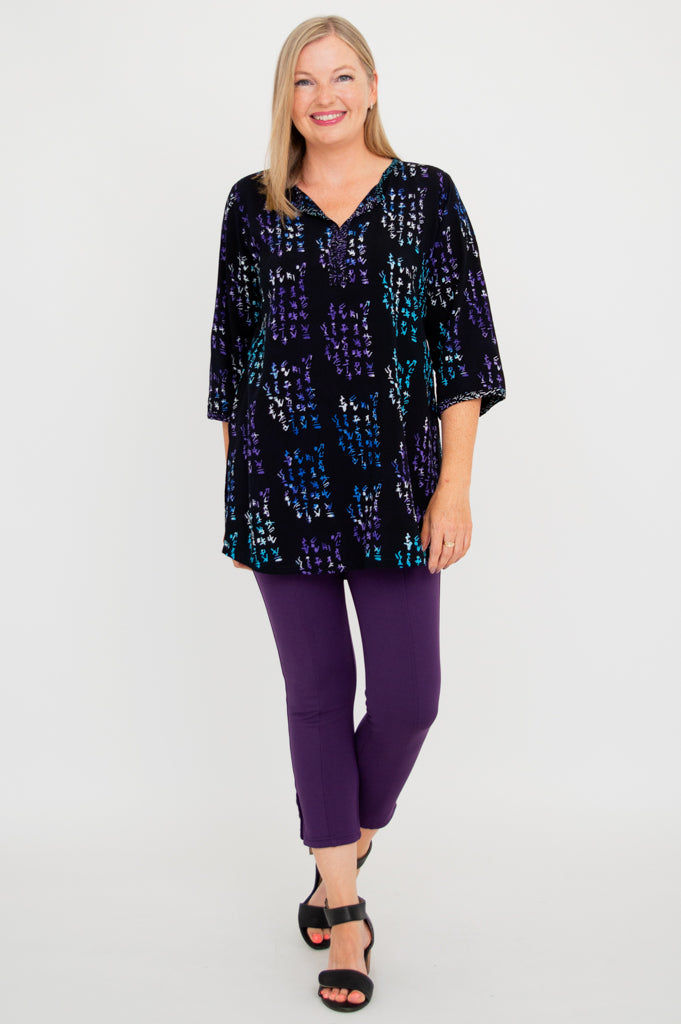The Kary Blouse features beautiful Batik fabric in an easy style. Just slip it on with your favourite pant and you are ready for the day.