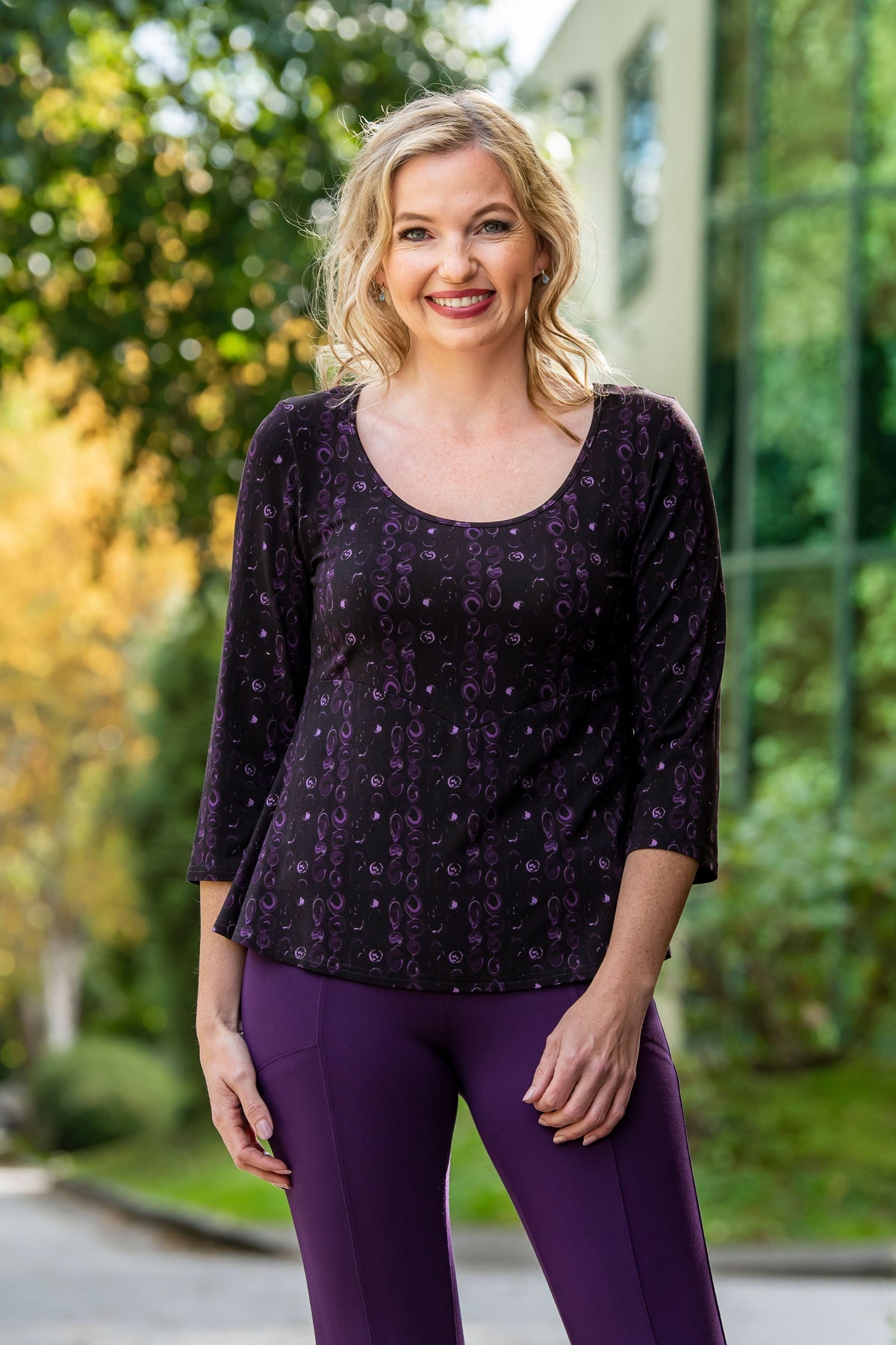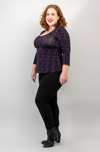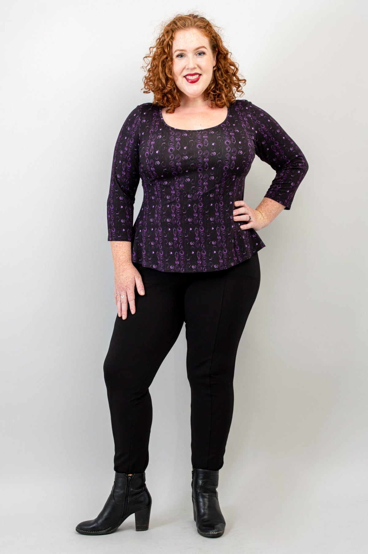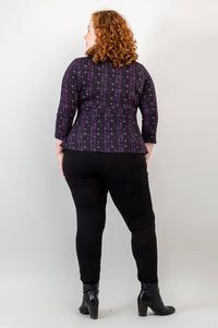 Our Kim Top has just the right touch of femininity, balanced with extra room in all the right places. Soft, stretchy Bamboo fabric makes for a fitted bodice that is flattering and comfy. Below the bodice, an empire seam with a dropped point at centre-front, which creates a vertical line to elongate the body. Fabric flares out from the empire seam to provide coverage and a touch of elegance. Sophisticated and simple, the Kim looks great with slim pants and skirts.