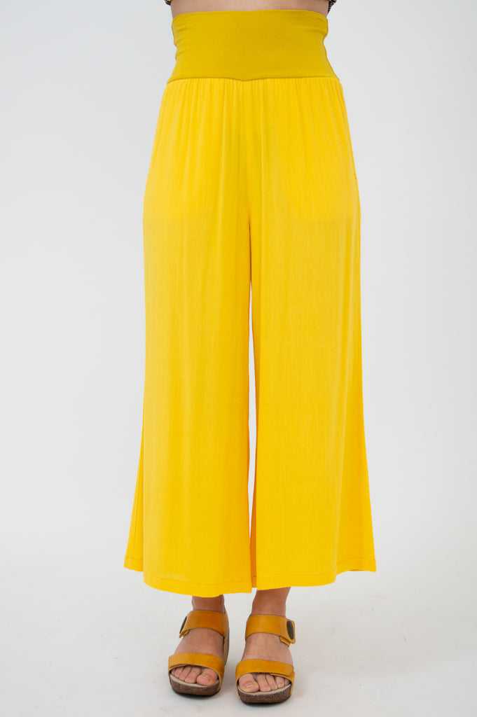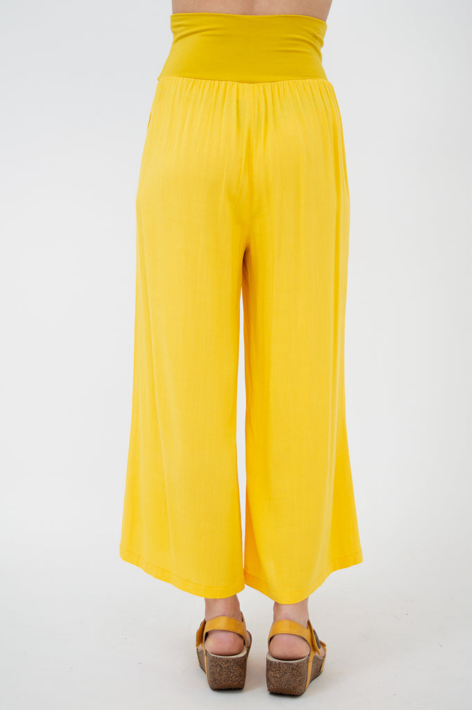 A Capri version of our best-selling Landon Pant. This easy pull on pant features a wider leg from hip to hem. The bamboo waistband can be worn high or folded over.