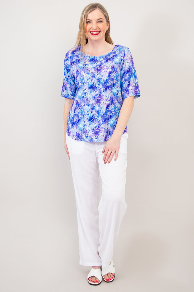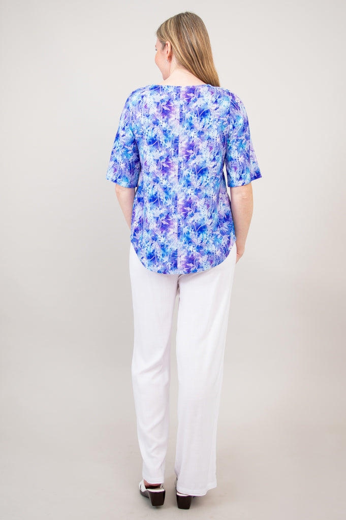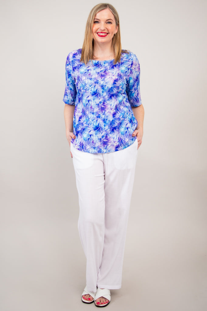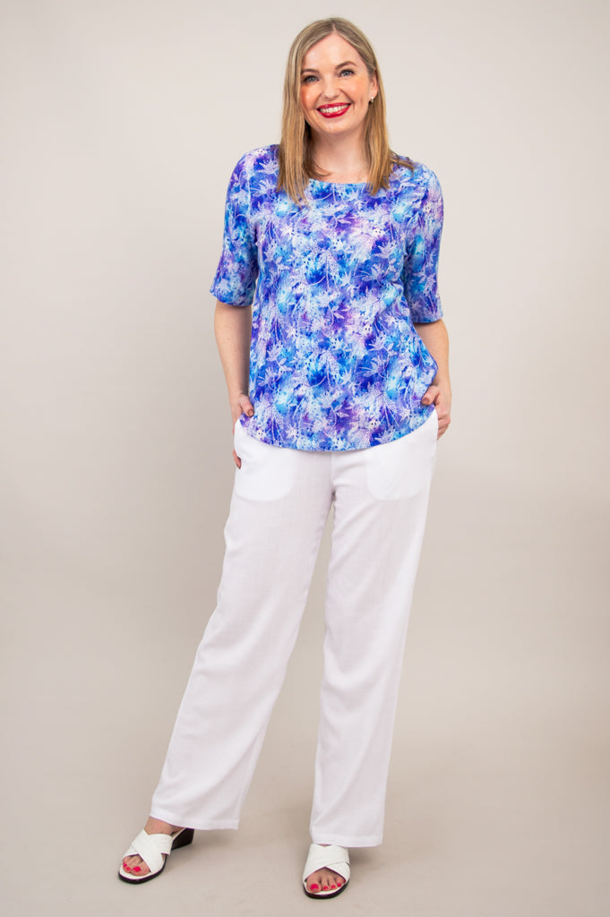 The Liza is a classic blouse with tee shirt styling. No buttons, no zippers just perfect simplicity.