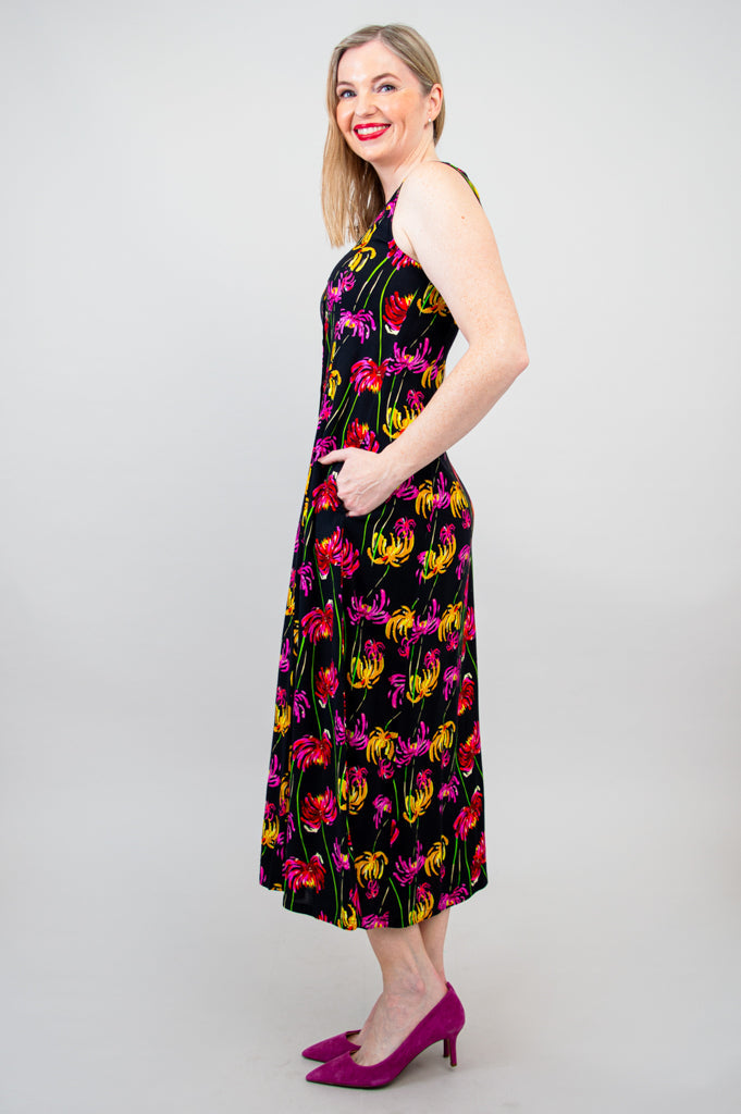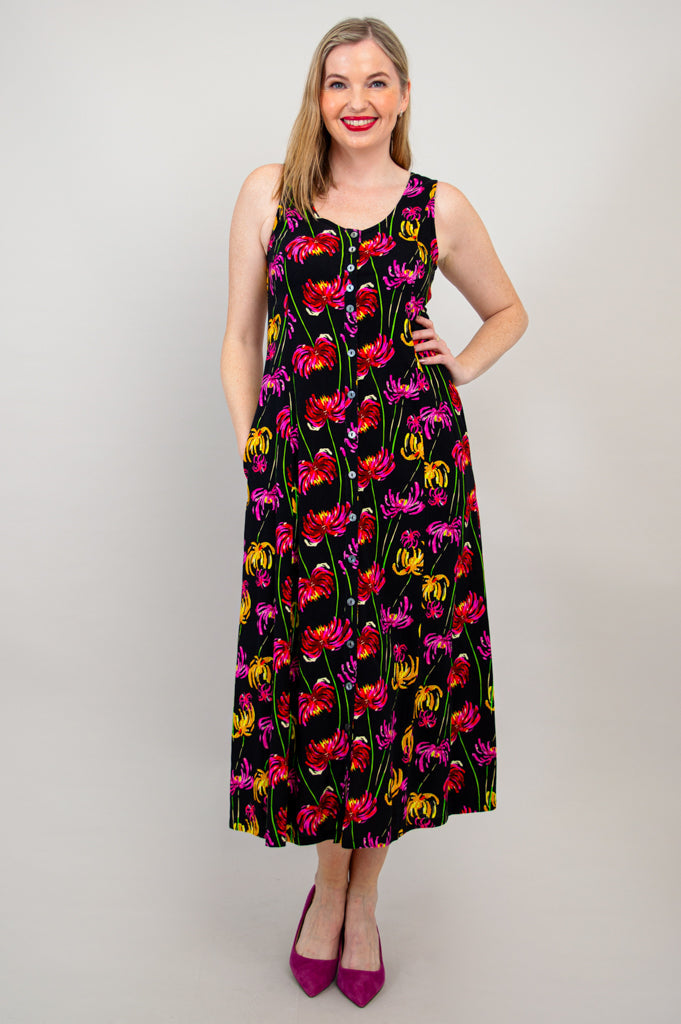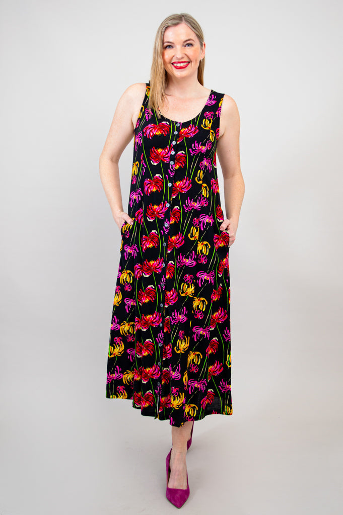 The Madison dress features a scoop neckline, pockets and a maxi length. It is made from our soft and breathable Linen/Bamboo. Pair with a cardigan or jacket for a layered look.