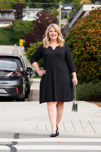 A modern, shift dress in soft, stretchy Bamboo fabric. The Maggie has a wide neckline, that features a small V shapes notch. Wide shoulder gives shape and coverage. A slight A-line allows fabric to skim over the hips easily. A very flexible style, the Maggie can be easily worn in both warm and cold weather.