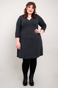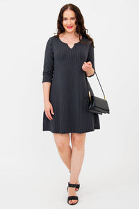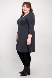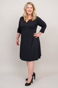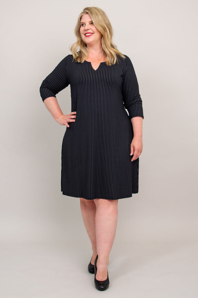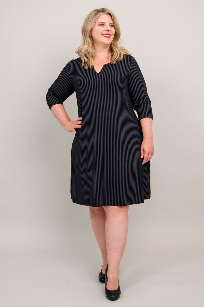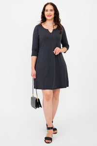 Maggie 3/4 Sleeve Dress, Blk/Grey Stripe, Bamboo