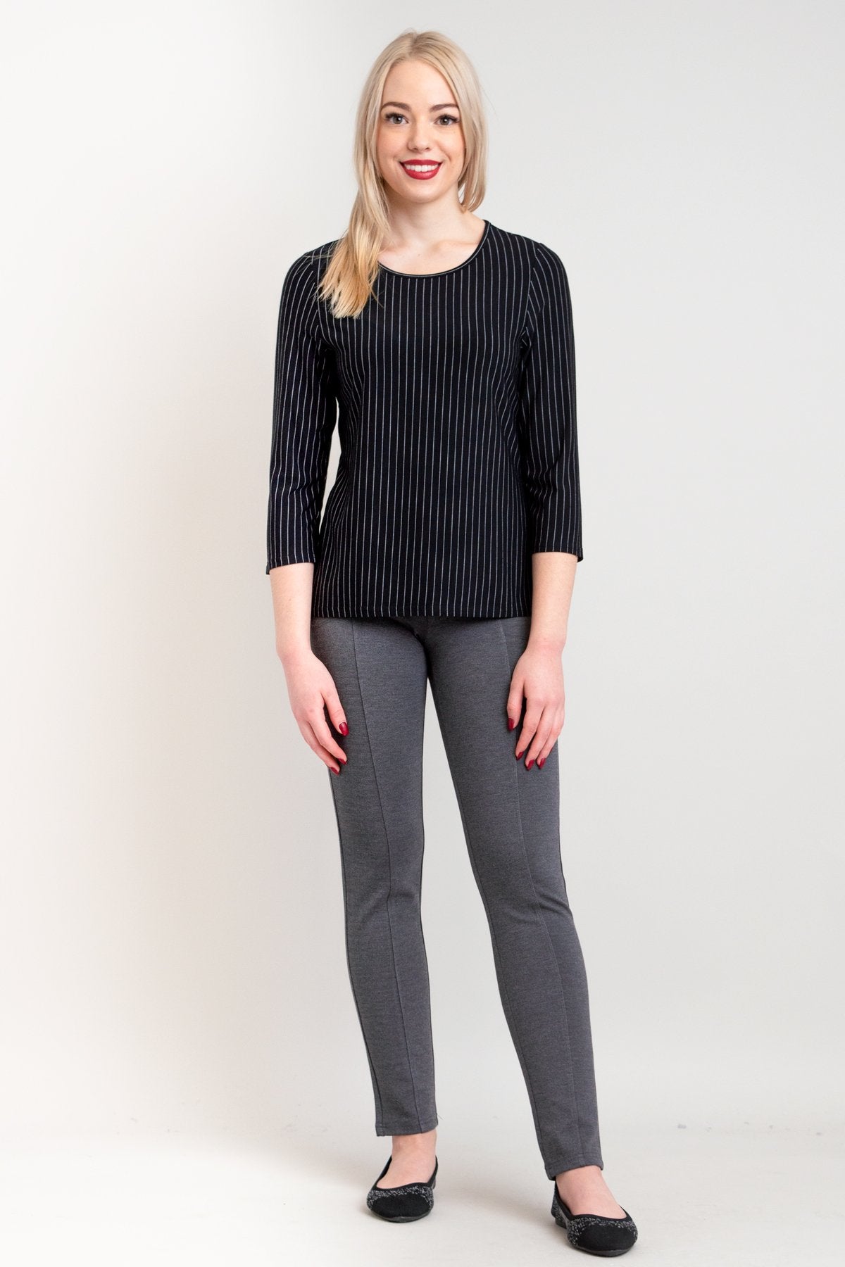 Margorie is the perfect basic tee. It is a more fitted style featuring 3/4 sleeves and a high round neck. This is your perfect layering piece.