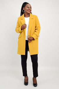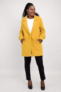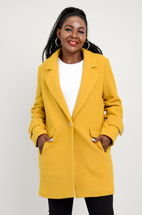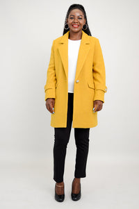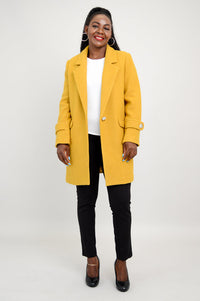 The Milan Coat is single-breasted with one-button closure and a notched lapel.  Decorative button flaps at the wrists match the closure button. Faux flaps on the front hide generous inseam pockets and maintain a sleek look. The hemline of the coat falls to mid-thigh, ensuring full coverage of the hips. Wear the Milan with a turtleneck sweater and boots for a chic, city look.