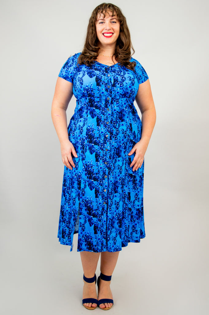 Morgan is one of our top sellers for a reason.  This classic cut features princess seams with buttons down the front.  This shapely design features a cap sleeve and two slits front and back which allow the dress to flow seamlessly while you move.
