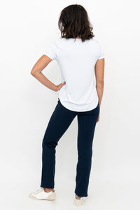Nadia Pants look tailored, but offer freedom and ease of movement. Tree based Modal gives the pant structure, while the long narrow silhouette offers the wearer a sleek look that fits any wardrobe. Features two hidden front pockets that fit your phone.