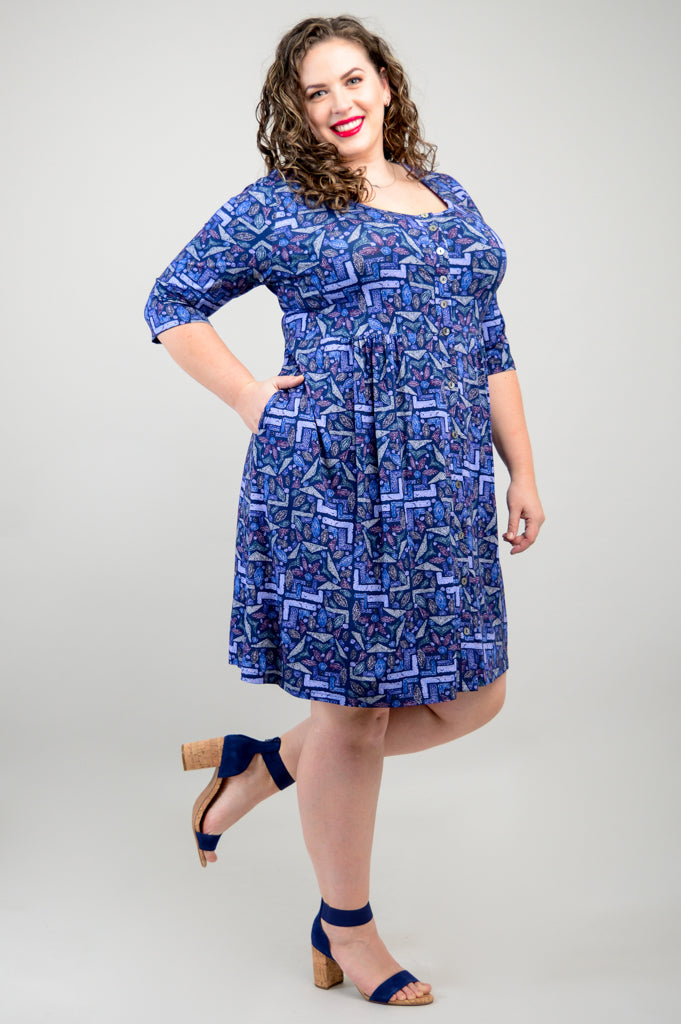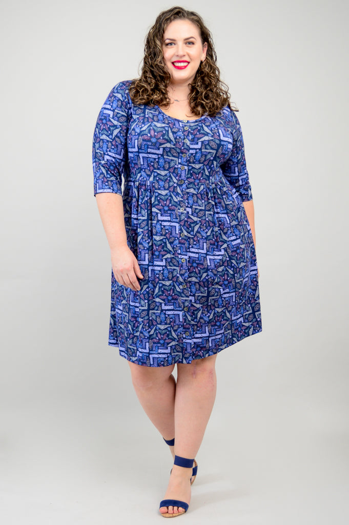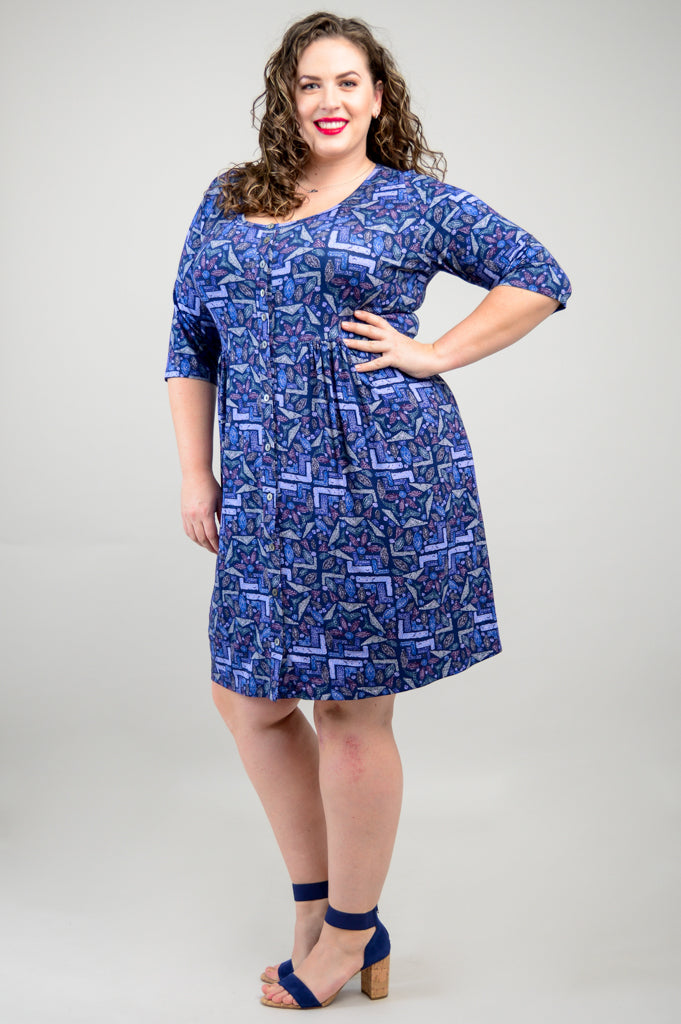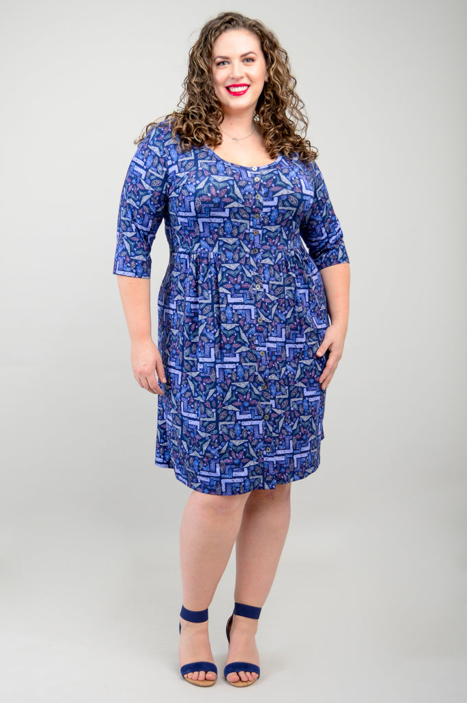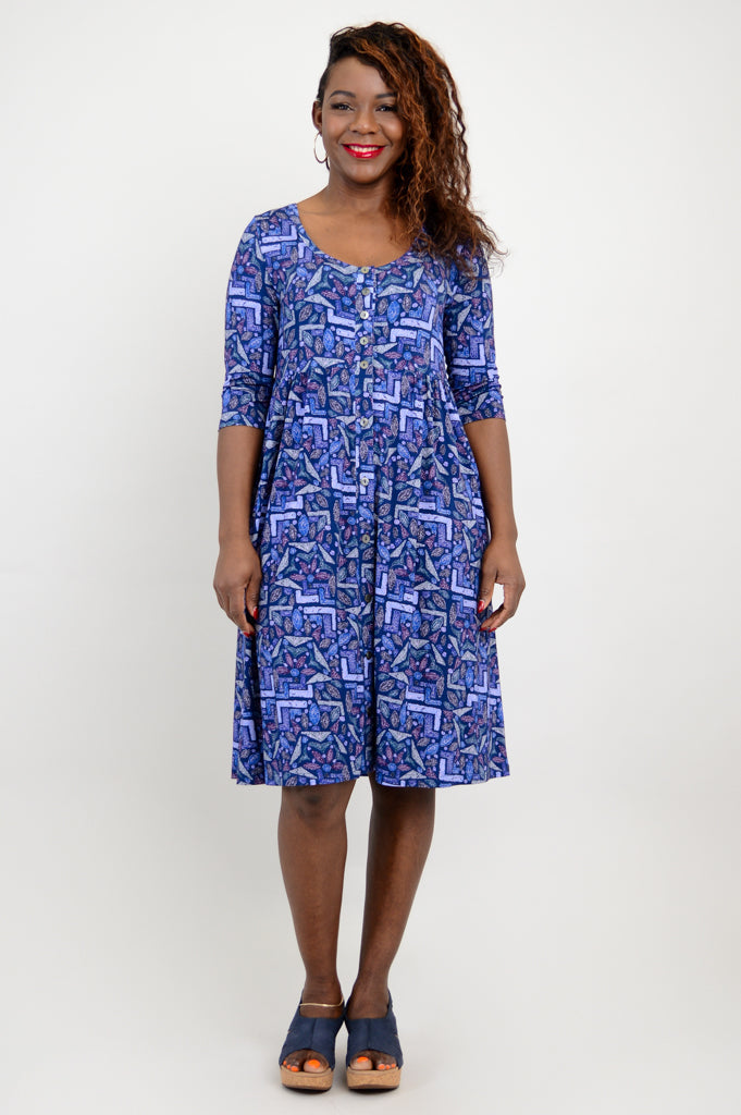 The Nelly Dress is a classic dress that features flattering details. An empire waist and buttons down the front create a vertical, slimming look. Tiny gathers at the waist give extra space where needed, and our Bamboo fabric provides a flowy drape that prevents clinging.