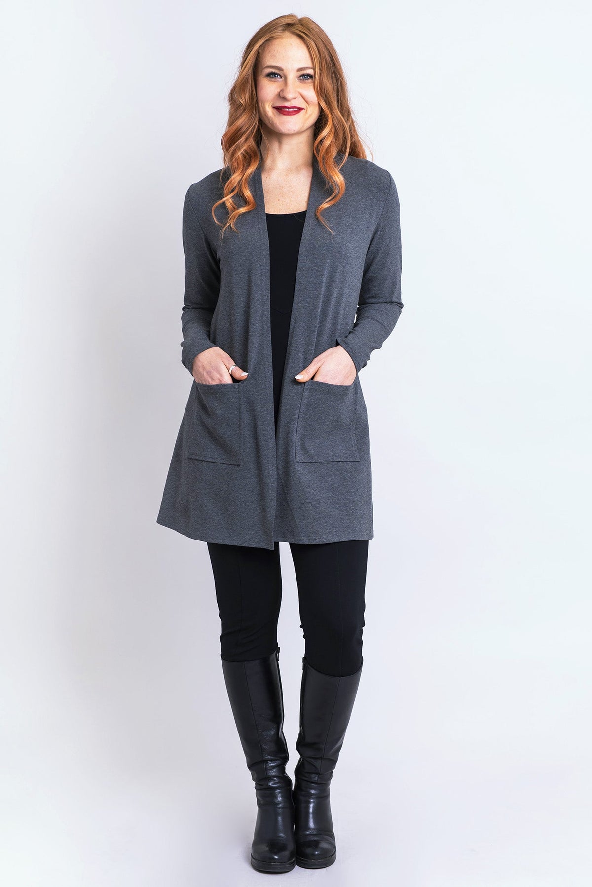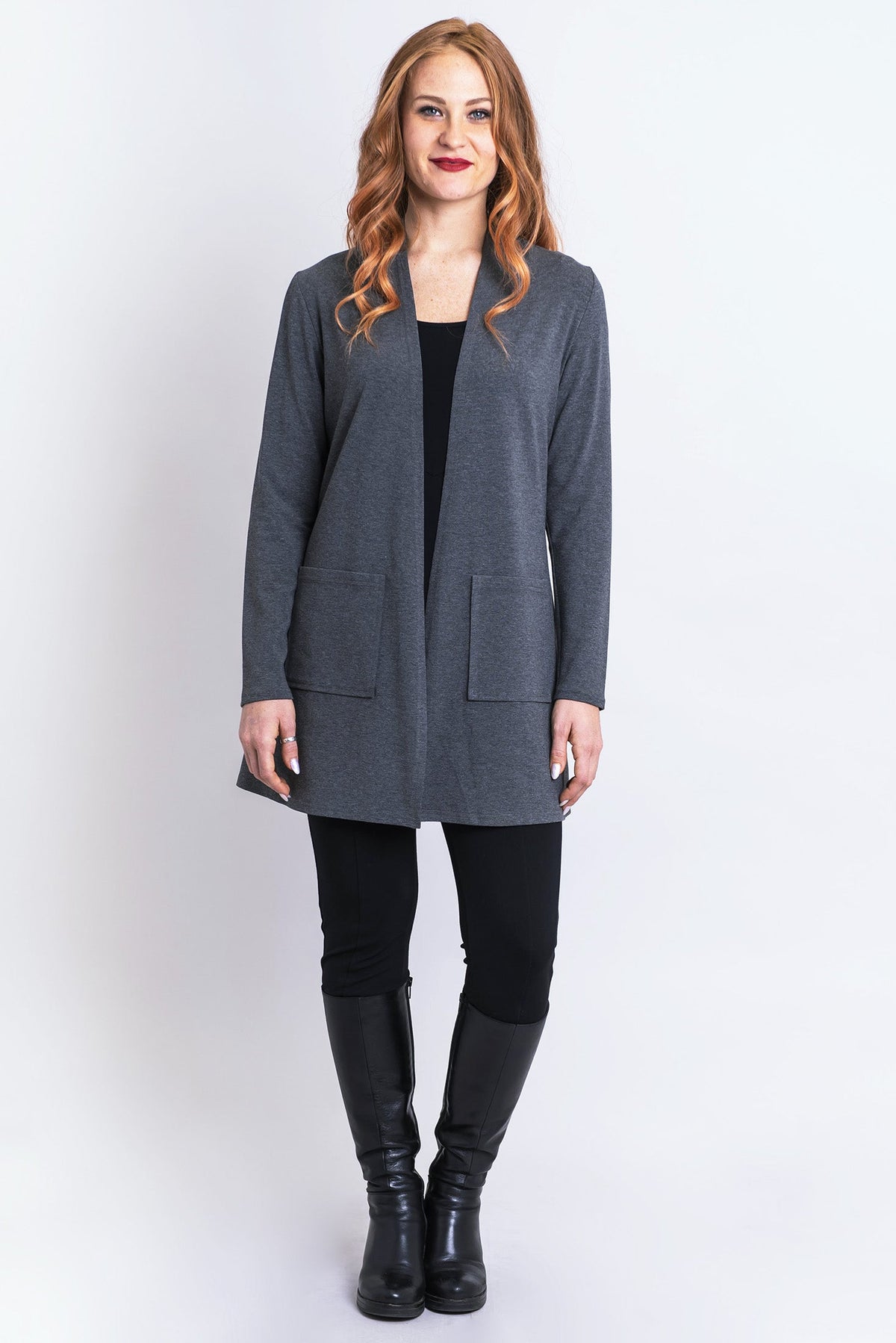 The Pauline is a lightweight jacket that is perfect for layering. It has a true fit in the shoulders for a clean finish and then falls to the thigh for coverage. Patch pockets and breathable fabric make this a staple for any wardrobe.