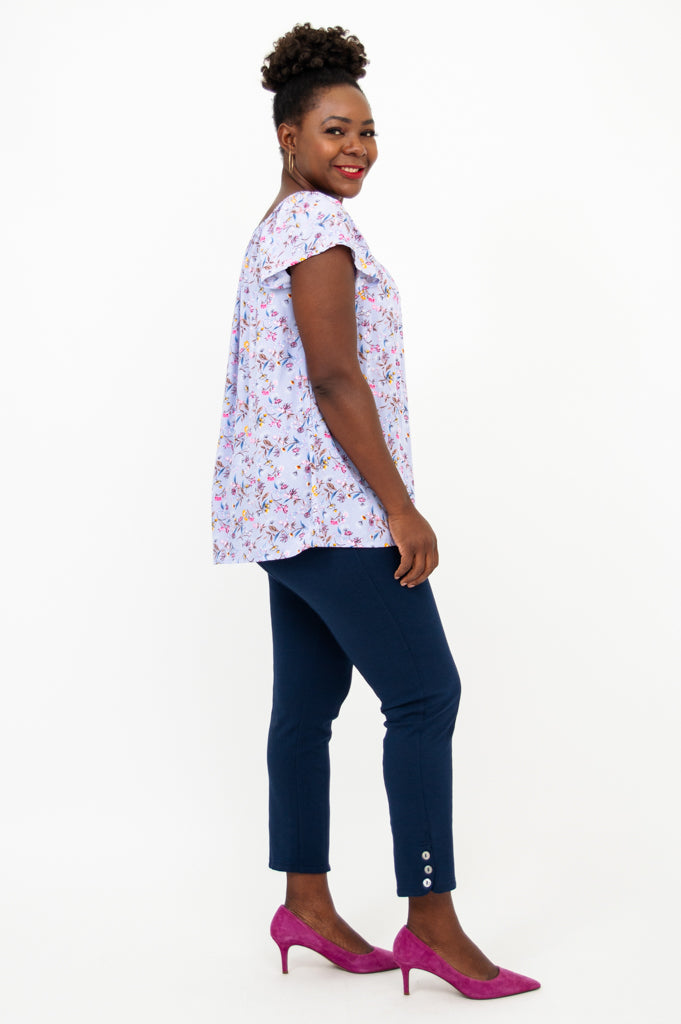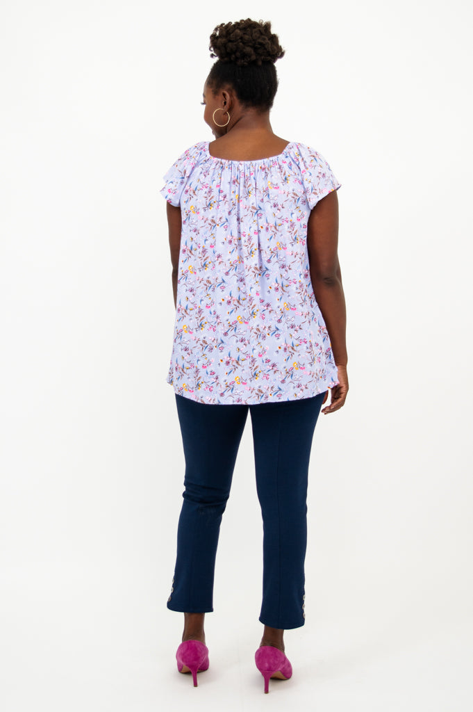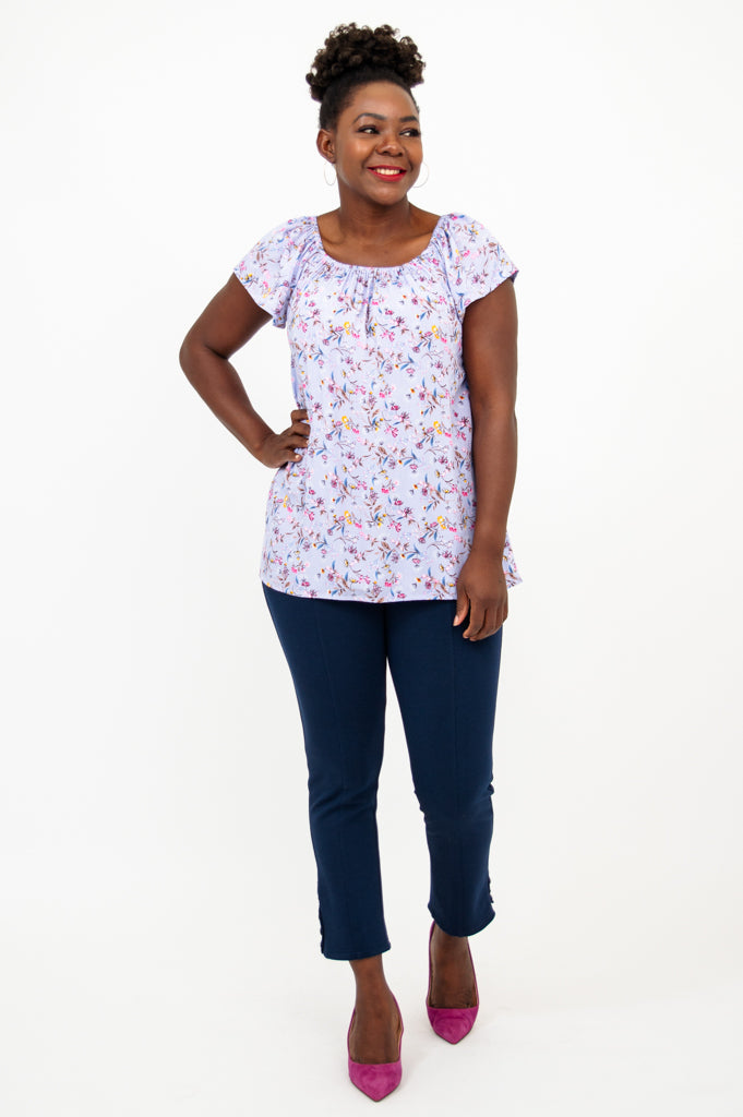 The cap sleeves and hem sitting at the hip make it easy to style this top with a shrug for additional coverage! Style this top with our Nadine Crop Pant for a put together look!