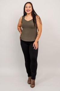 The Ritzy Tank features a sweetheart neckline that flatters on all. Wide shoulder straps hide bras, and a touch of shaping at the high waist adds light definition, conforming to your natural shape. Cut to the mid-hip, the Ritzy has a fluid hemline that floats around the midsection, giving coverage and movement.